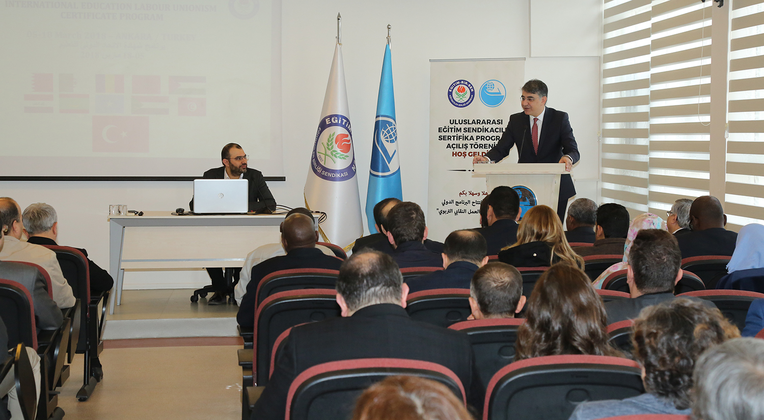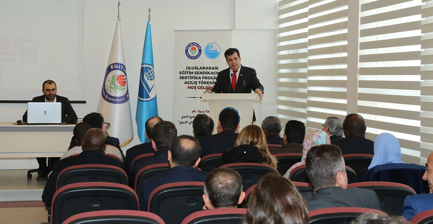 Eğitim-Bir-Sen ve Türkiye ve Orta Doğu Amme İdaresi Enstitüsü (TODAİE) tarafından üçüncüsü düzenlenen “Uluslararası Eğitim Sendikacılığı Sertifika Programı” TODAİE’de başladı. Afrika Sendikalar Birliği Örgütü (OATUU) Genel Sekreteri Arezki Mezhoud, Genel Başkan Yardımcısı Yusuf Abdulkerim ve Genel Sekreter Yardımcısı Emmanuel Nzunda’nın da hazır bulunduğu açılışta konuşan Ali Yalçın, özel ve güzel bir toplantı daha gerçekleştirdiklerini ifade ederek, ilk defa sendikal bir eğitim programını Arapça yaptıklarını söyledi.
