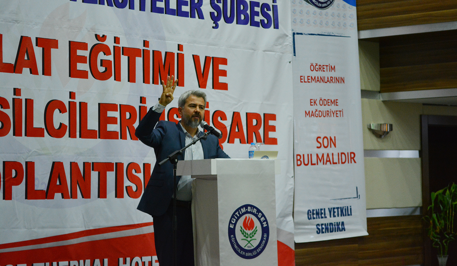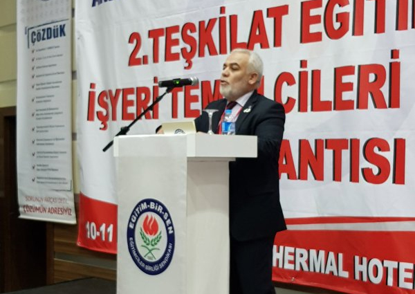 Eğitim-Bir-Sen Genel Başkan Yardımcısı Atilla Olçum, sorunlardan beslenen değil, çözümlerle güçlenen bir sendika olduklarını ifade ederek, “Biz sorunlu alanlara dikkat çekerek, çözüm önerileri sunarak, daha verimli olabilmeleri için çalışanların mağduriyetlerinin giderilmesi gerektiğini dile getirerek, sorunların çözümünün takipçisi olarak üzerimize düşeni yapıyoruz. Hiçbir zaman mazeretlere sığınmadık, sığınmıyoruz. Örnek işlere imza atıyoruz. Yetkililerden de, mazeret bildirmek yerine marifet göstermelerini, zamana yaymak, sümen altı etmek yerine sorunlara çözüm bulmalarını istiyoruz. Ayrımcılık yapanların, hukuk dışına çıkanların, keyfi uygulama yapanların karşısında olmaya devam edeceğiz” dedi.