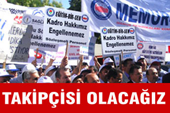 Milli Egitim Bakanligi’nin hazirlayip, Maliye Bakanligi ve Devlet Personel Baskanligi’na gönderdigi sözlesmeli ögretmenlerin kadroya geçisini saglayan yasa taslaginin bir an önce TBMM’ye sevk edilerek yasalasmasinin takipçisi olacagiz.