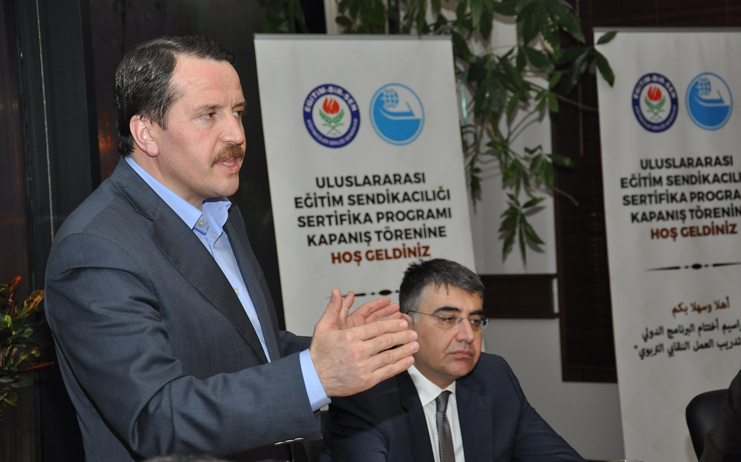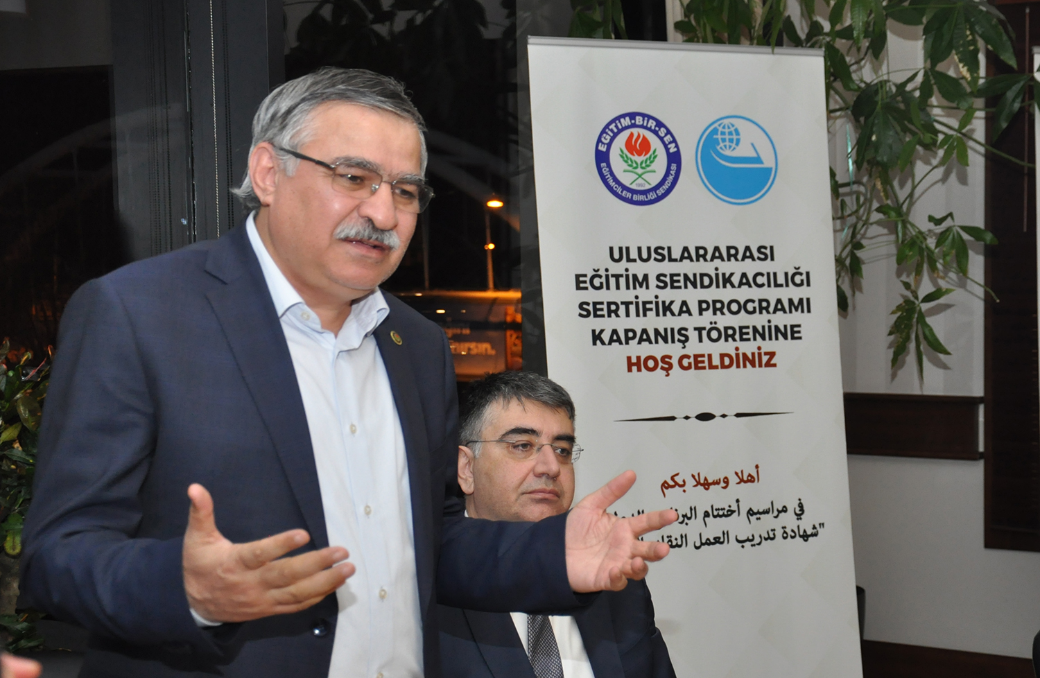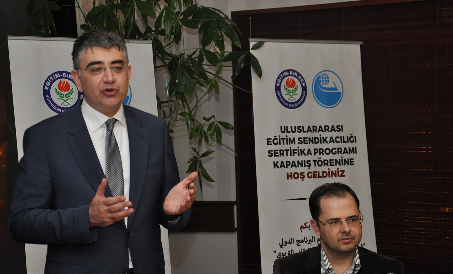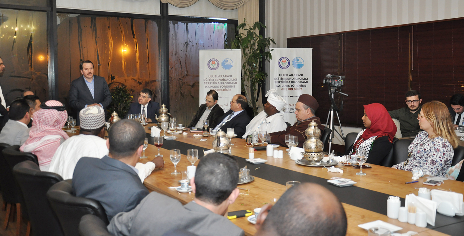 Eğitim-Bir-Sen Genel Başkan Vekili Latif Selvi ve Arap Eğitim Örgütü (AEO) Başkanı Jamal El-Houssami’nin de birer konuşma yaptıkları programın sonunda katılımcılara sertifikaları verildi.
