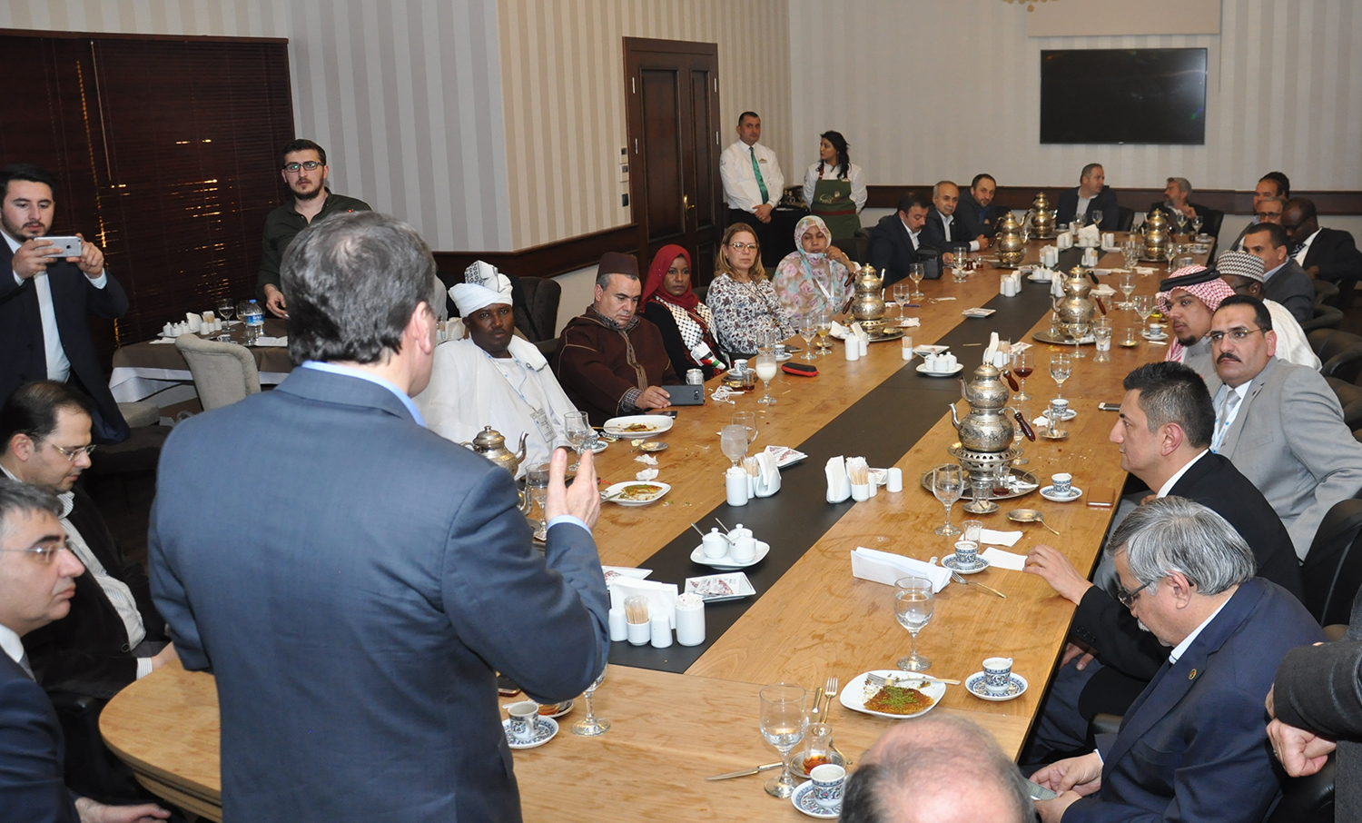 TODAİE Genel Müdürü Prof. Dr. Onur Ender Aslan, farklı ülkelerden gelen eğitim sendikası temsilcileriyle 15 gün boyunca Arapça yaptıkları eğitimden şeref duyduklarını dile getirerek, şöyle konuştu: “TODAİE tarihinde bir milattır bu. Cebelitarık’tan Akdeniz’e Arapça dilinde bir kardeşlik, dostluk, bilimsel bir ortam var. Bu manada çaba gösteren herkese teşekkür ediyorum. Yüzyıldır nedense bütün savaşlar, bütün olaylar hep bu coğrafyada oluyor. Başka coğrafyalara bakıyoruz, oralarda barış var, refah var. Bunun coğrafyamızda olmamasının tek bir nedeni var: Birlik ve beraberlik eksikliği. Dolayısıyla birlik ve beraberlik olan yerde barış da olur, refah da. Bir araya gelerek geleceğimizin tohumlarını atıyoruz.”