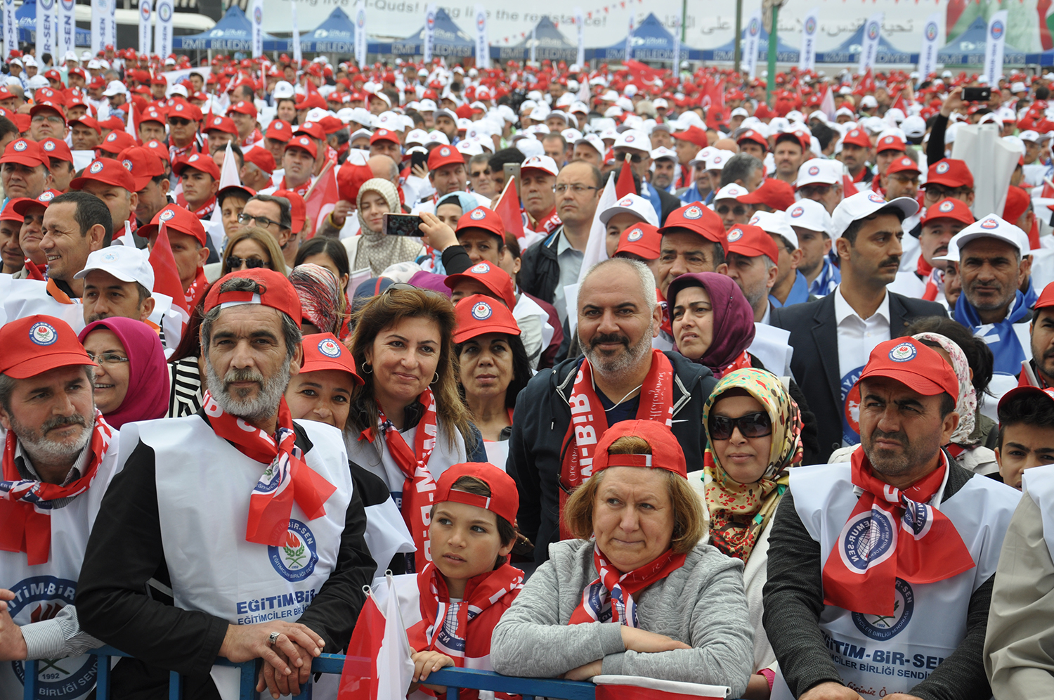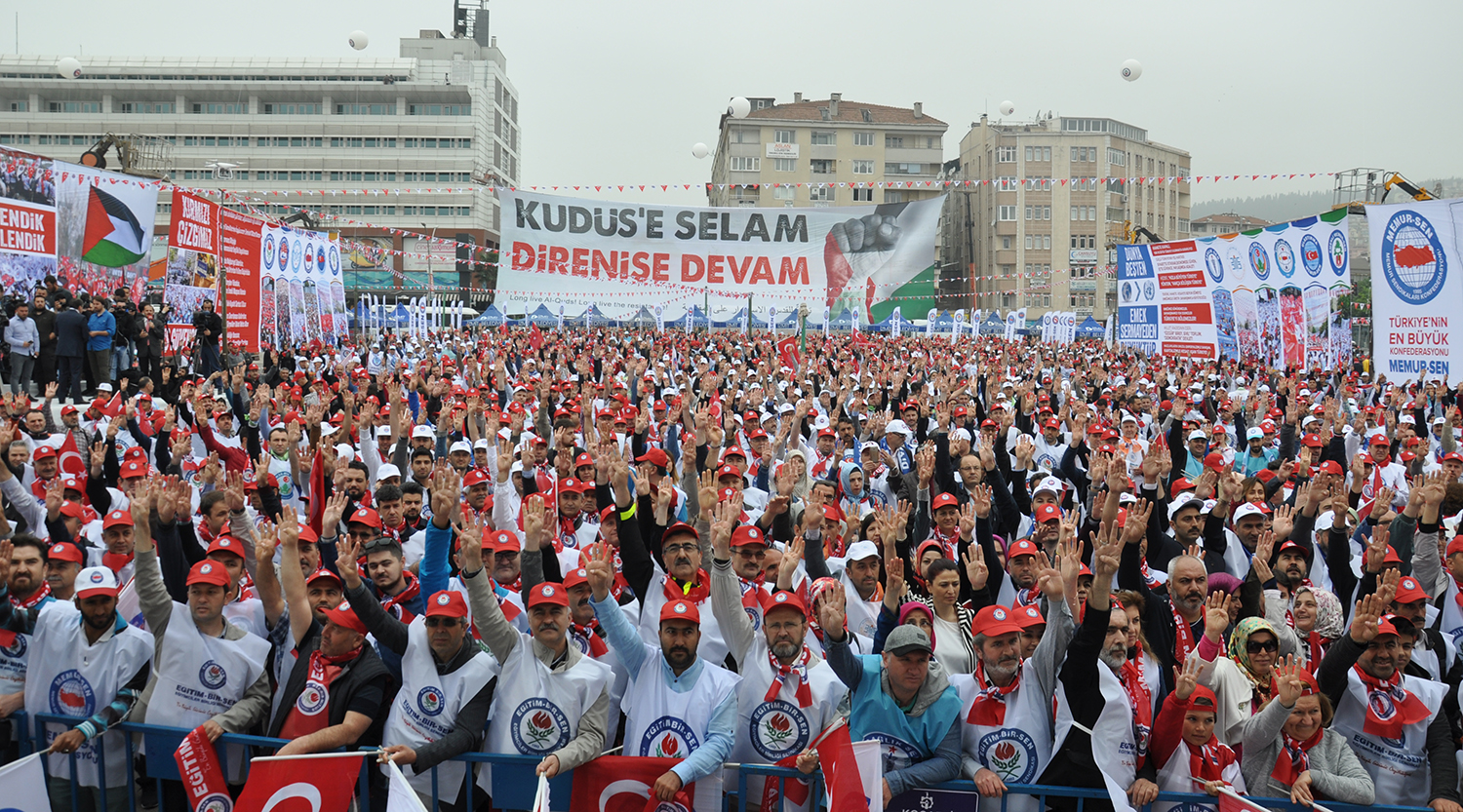 1 Milyon üyesiyle Türkiye`nin en büyük emek hareketi olan Memur-Sen, 1 Mayıs Emek ve Dayanışma Günü`nü Kocaeli'nde kutladı. Meydandan küresel mesaj ve talepler haykırılırken, 81 ilden kamu görevlileri, üzerlerinde “Hak”, “Adalet”, “Emek”, “Kardeşlik”, “Huzur”, “Alınteri”, “Özgürlük”, “Dayanışma”, “Eşitlik”, “Birlik”, “Saygın İş” ve “Merhamet” yazılı atkılarla görsel şov yaptı.