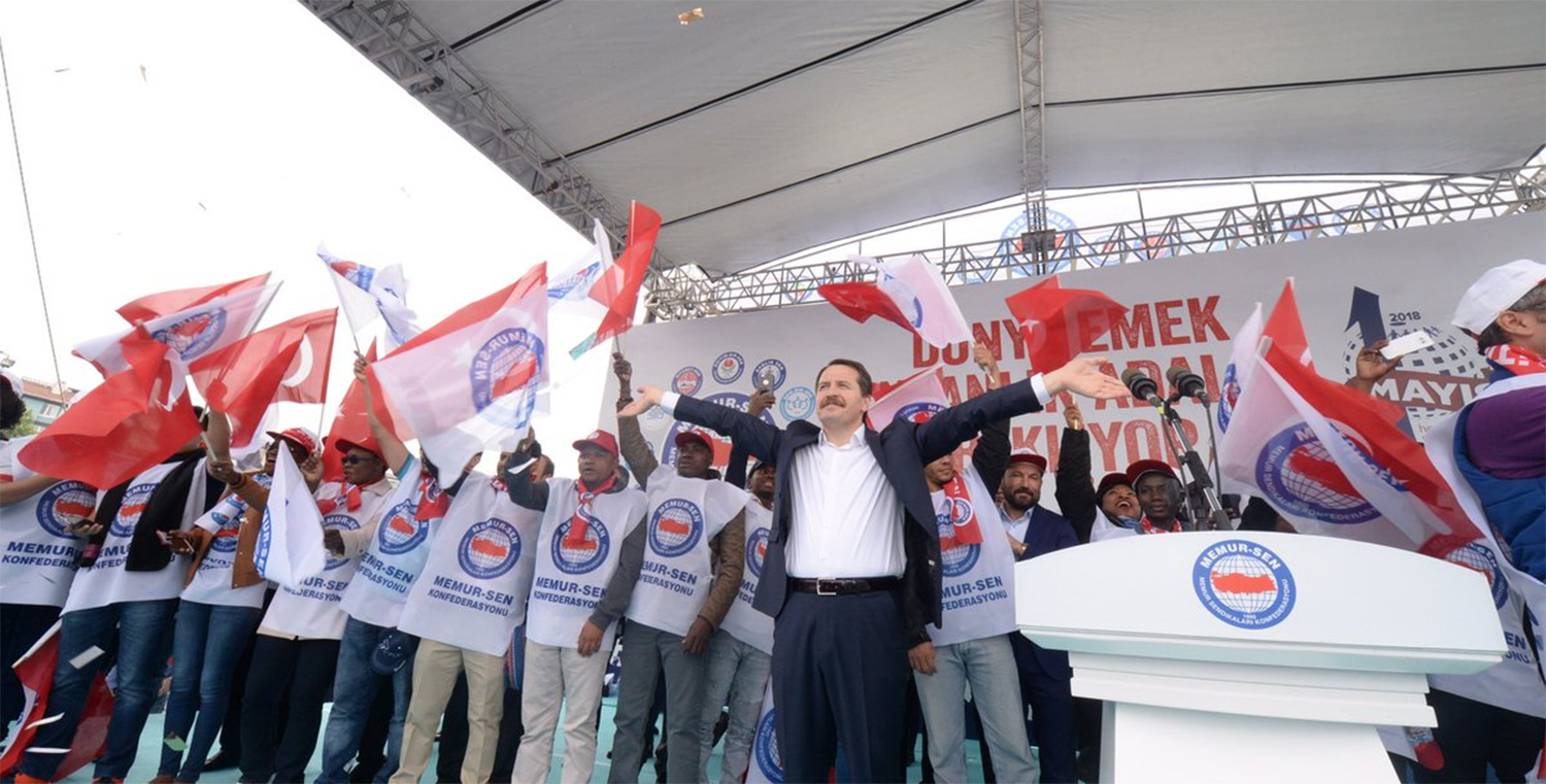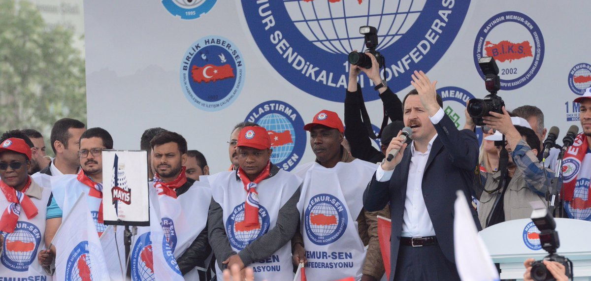 Daha sonra Eğitim-Bir-Sen ve Memur-Sen Genel Başkanı Ali Yalçın, kürsüye gelerek on binlere seslendi. Yalçın'ın konuşması sık sık sloganlarla bölündü. Meydandaki on binler, "emek" ve "alınteri" mesajı verdi.