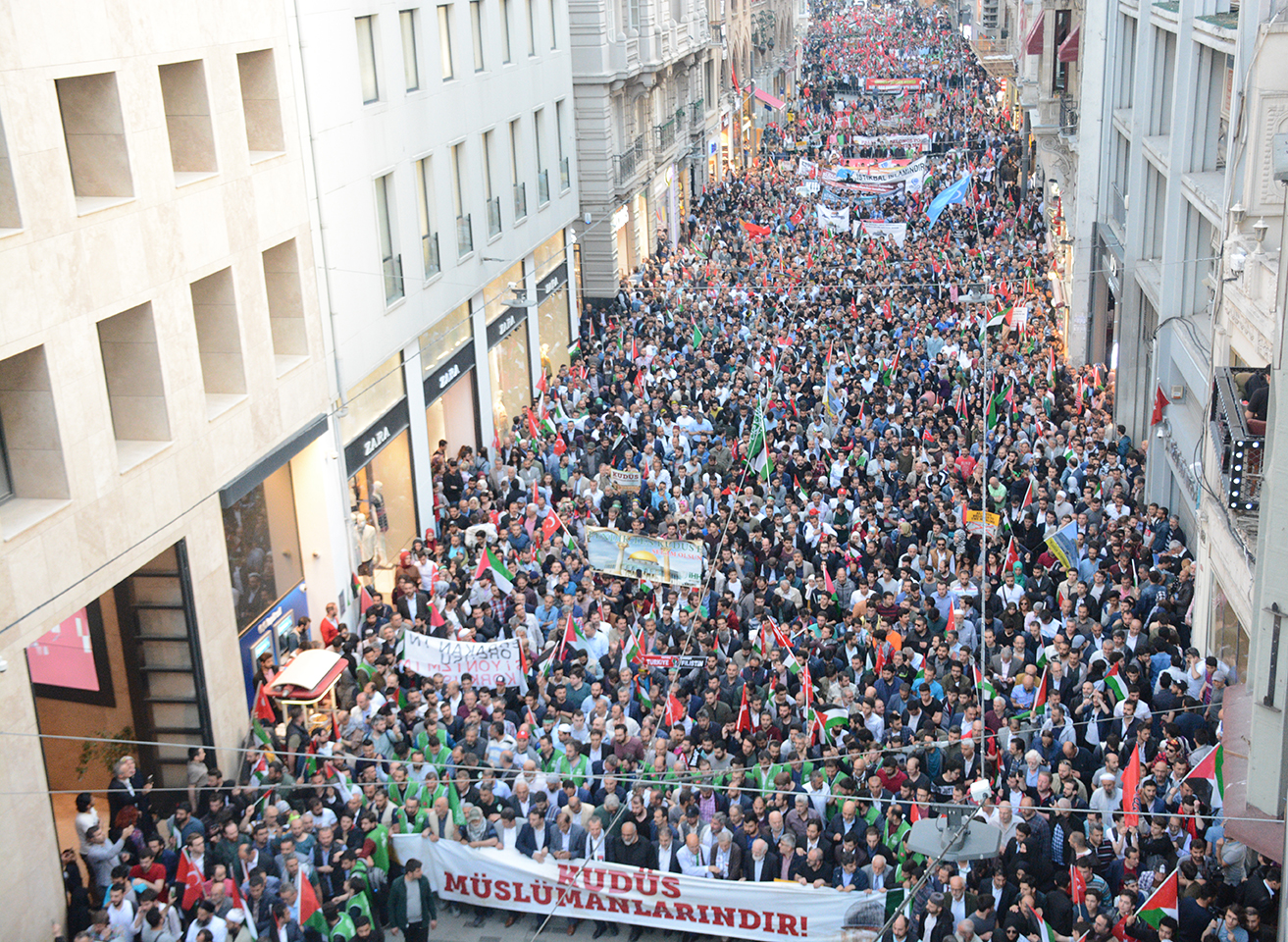 Siyonist İsrail’in gerçekleştirdiği katliamlar ve ABD Büyükelçiliği’nin Kudüs’e taşınması, Türkiye genelinde protesto edildi. İstanbul/Taksim’de “İşgale Karşı Ses Ver” yürüyüşü gerçekleştirilirken, Ankara’da konsolosluk önünde toplanıldı, Samsun’da ise katliamlar kınandı. Eylemlerde emperyalizm ve siyonizm aleyhine sloganlar atıldı, “Özgür Filistin’in yanındayız” iradesi gösterildi.