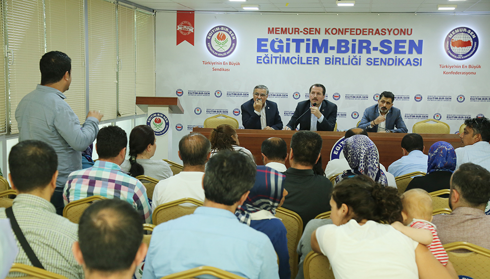 “İstihdamda güçlük çekilen yerlere teşvik konulmadığı sürece bu tartışma artarak devam edecektir. Bu konuda sonuna kadar yanınızdayız. İkili ortamlarda, toplu sözleşme masasında, KPDK’dan tutun KİK toplantısına varana kadar her türlü platformda bu konuyu özellikle dile getiriyoruz. Eğitim-Bir-Sen yetkili sendika olarak sonuna kadar yanınızda. Bu mesele bizim için temel insani ve İslâmi bir haktır. Aile bütünlüğünün sağlanmasını istemekten daha temel bir hak olabilir mi? 2011’de bu süreci başarıyla sonuçlandıran kitle olarak bugün yine aynı şekilde duruşumuzdan ödün vermeden dile getirmeye devam edeceğiz.”