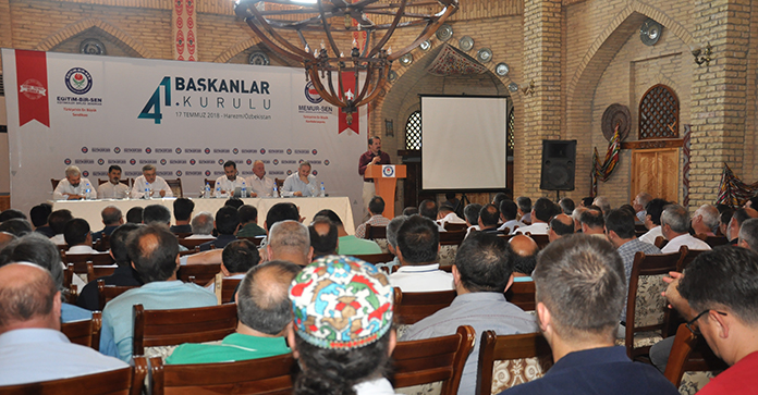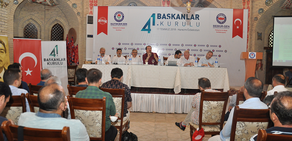 41. Başkanlar Kurulu toplantısı Harezm/Özbekistan’da yapıldı. Gündeme ilişkin değerlendirmelerin yapıldığı toplantının açılışında konuşan Genel Başkan Ali Yalçın, Millî Eğitim Bakanlığı’nın, öğretmenlerin özlük haklarını geliştirerek mesleğin itibarını hak ettiği noktaya çıkarması, eğitim çalışanlarının sorunlarının çözümüne ilişkin daha çok çaba göstermesi gerektiğini ifade etti.