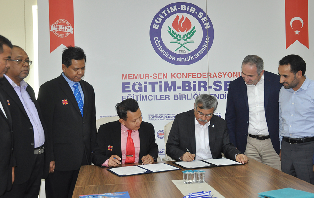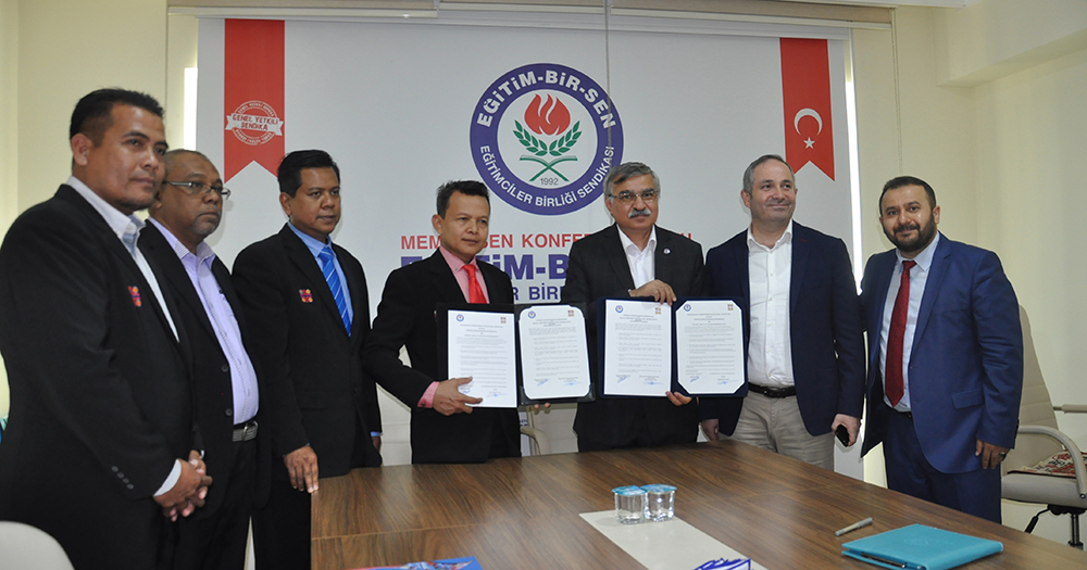Dayanışma amaçlı eğitim iş birliği anlaşmasını Eğitim-Bir-Sen adına Genel Başkan Vekili Latif Selvi, NUTP adına Genel Sekreter Vekili Aminuddin bin Awang imzaladı.
