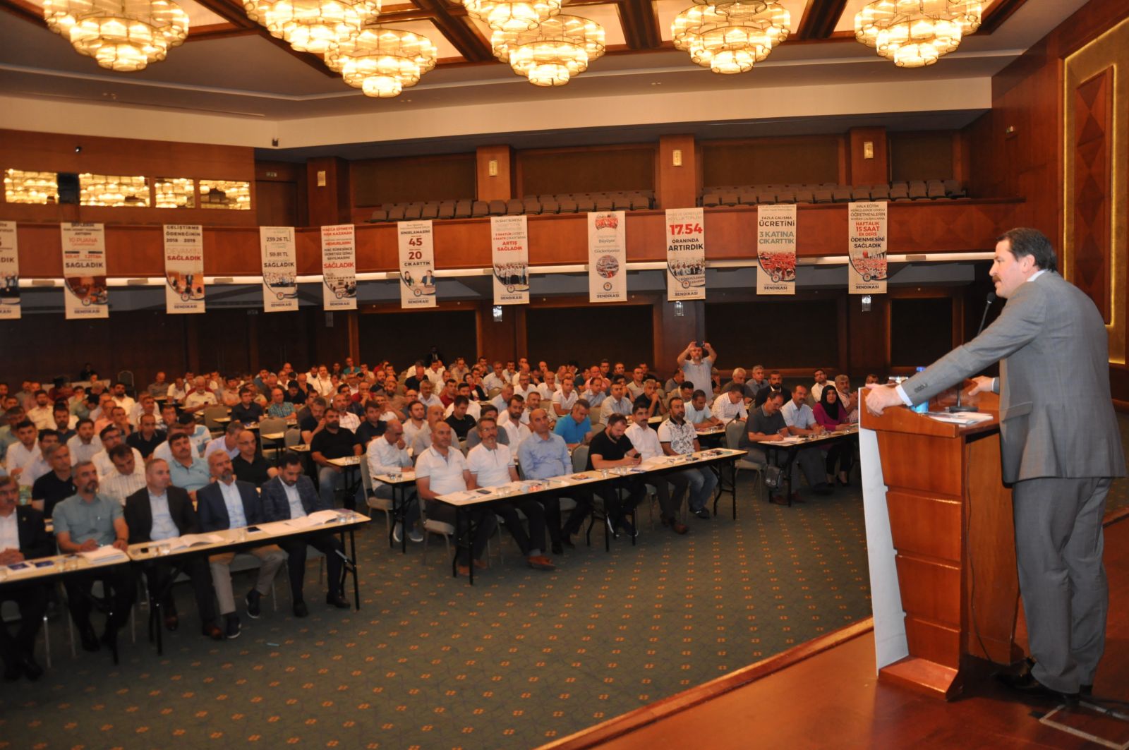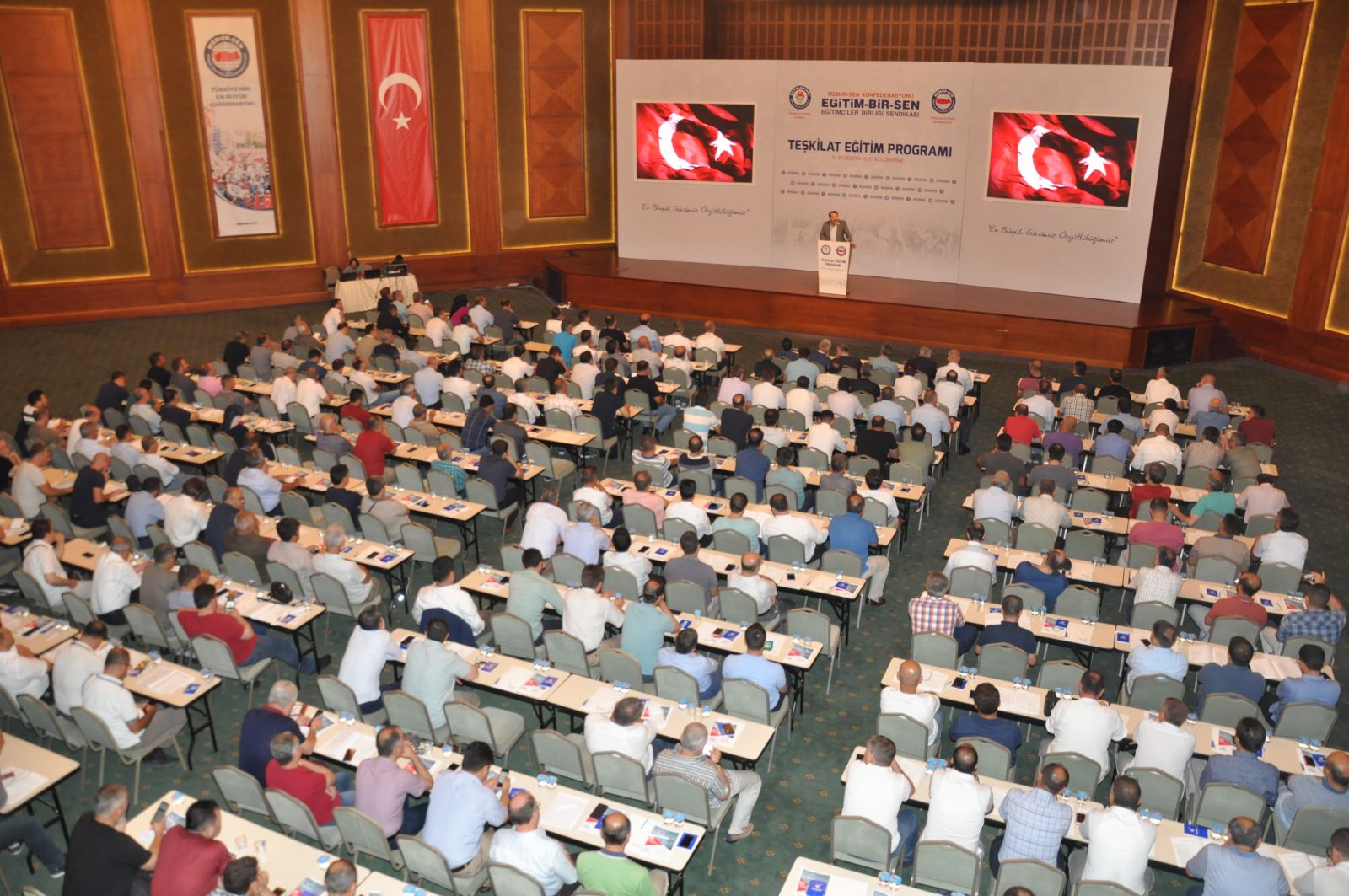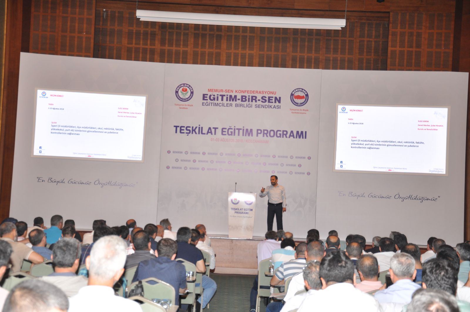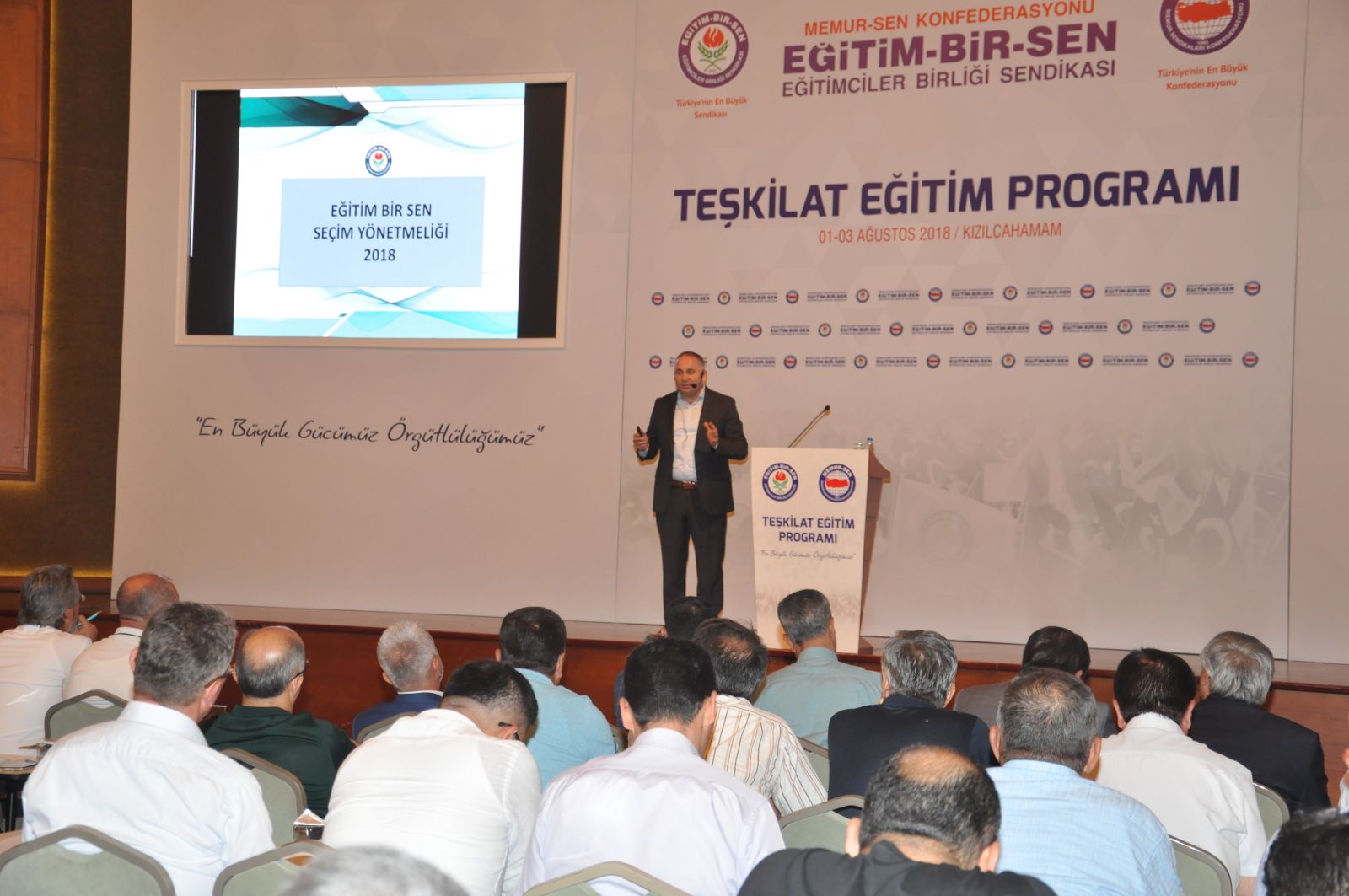 Teşkilat Eğitim Programı Kızılcahamam’da gerçekleştirildi. Önümüzdeki dönemde yapılacak çalışmalara ilişkin istişarelerin yapıldığı programın açılışında konuşan Genel Başkan Ali Yalçın, Şube ve İlçe Temsilcilik yönetimleri, Kadınlar Komisyonu yöneticileri, Formatör Eğitimi ve İşyeri Temsilcileri eğitim programlarını yaptıklarını hatırlatarak, “Vizyon belgemizde açıkladığımız işimize, içimize ve dışımıza yolculuğun her bir aşamasında mesafe kat ederek yürüyüşümüzü sürdürüyoruz. Dün ne vadettiysek bugün bunların tamamını gerçekleştirmiş bulunmaktayız. Türkiye’de daha nitelikli bir sendikacılığın yapılması, sendikal bilincin artması için çalışmalarımız, eğitim programlarımız devam edecektir” dedi.