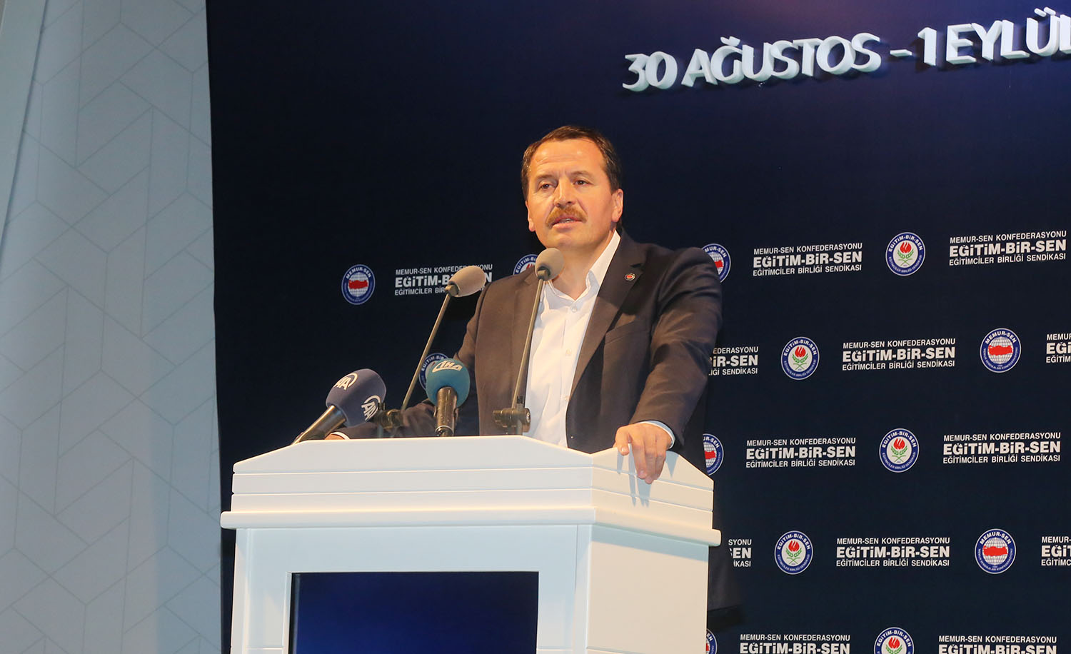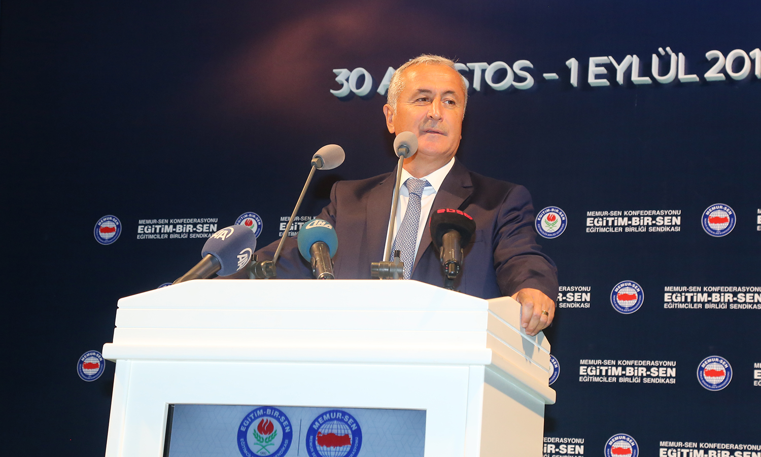 Eğitim-Bir-Sen ve Memur-Sen Genel Başkanı Ali Yalçın, küreselleşmenin bireye, insana ‘çok naif bir şekilde balık olman sonucu değiştirmez, yaşamak istiyorsan uçmalısın’ dayatmasında bulunduğunu ifade ederek, “Biz ise hem eğitimci hem sendikacı olarak diyoruz ki, insan olmadıkça uzman olmamızın, onurumuzu koruyamadığımız sürece pastadan en büyük payı almanın, emeğe değer vermeyen toplumda sendika kurmanın ve sendikacılık yapmanın mümkün olmayacağını ve anlamsız olacağını söylüyoruz. Biz, adaletsiz bir dünyanın değil, hakça bölüşülen bir dünyanın derdini taşıyoruz. Biz, standartlara hapsedilen bireye itiraz ediyor, biricik olma hasletine sahip insan için mücadele etmeyi önemsiyoruz. Biz, sendikal mücadeleyi insanın ilk ve kadim eylemi emeği korumanın ve insanı insan kılma faaliyeti olan eğitimi insanlaşma olarak tanımlamanın hedefiyle birlik ve dayanışma davetinde bulunuyoruz” dedi.