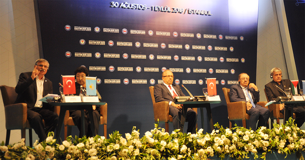 Kazakistan eğitim sendikası KTUESW Başkanı Maira Amantayeva, hızla değişen rekabet dünyasında nasıl bir konum alınması gerektiğini konuştuklarını belirterek, “Öğretmenin eğitim seviyesi ne kadar yüksekse o ülkenin o kadar başarılı olduğunu tecrübe ediyoruz. Emeklerimizin meyvesini almamız eğitimin iyi olmasına bağlıdır. Eğitimin ticarileştirilmesi parasızlıktan değil, bu daha büyük hesaplar içeriyor. Öğretmenin sosyal statüsü ne kadar yüksek olursa o devlet de o kadar başarılı olur. Eğitim çok zor bir süreç ve ülke ekonomisine önemli ölçüde bağlıdır. Bizler sendikalar olarak öğretmenlerin sorunlarını yetkililere iletmekten çekinmemeliyiz. Bizim elde edeceğimiz haklar neticesinde halkın memnuniyeti ve huzuru artar” dedi.