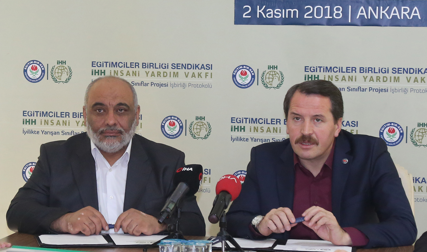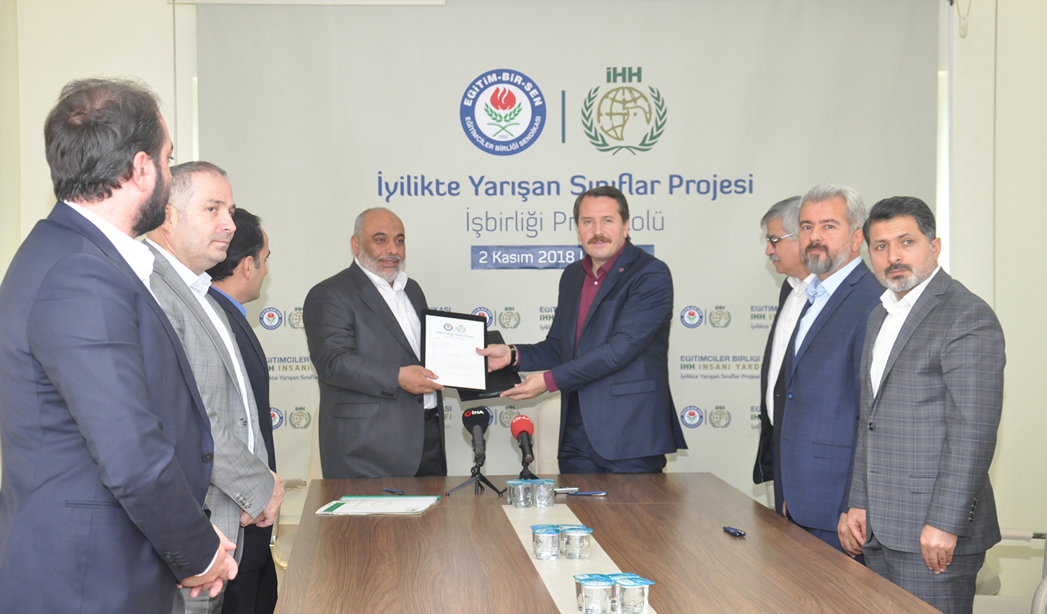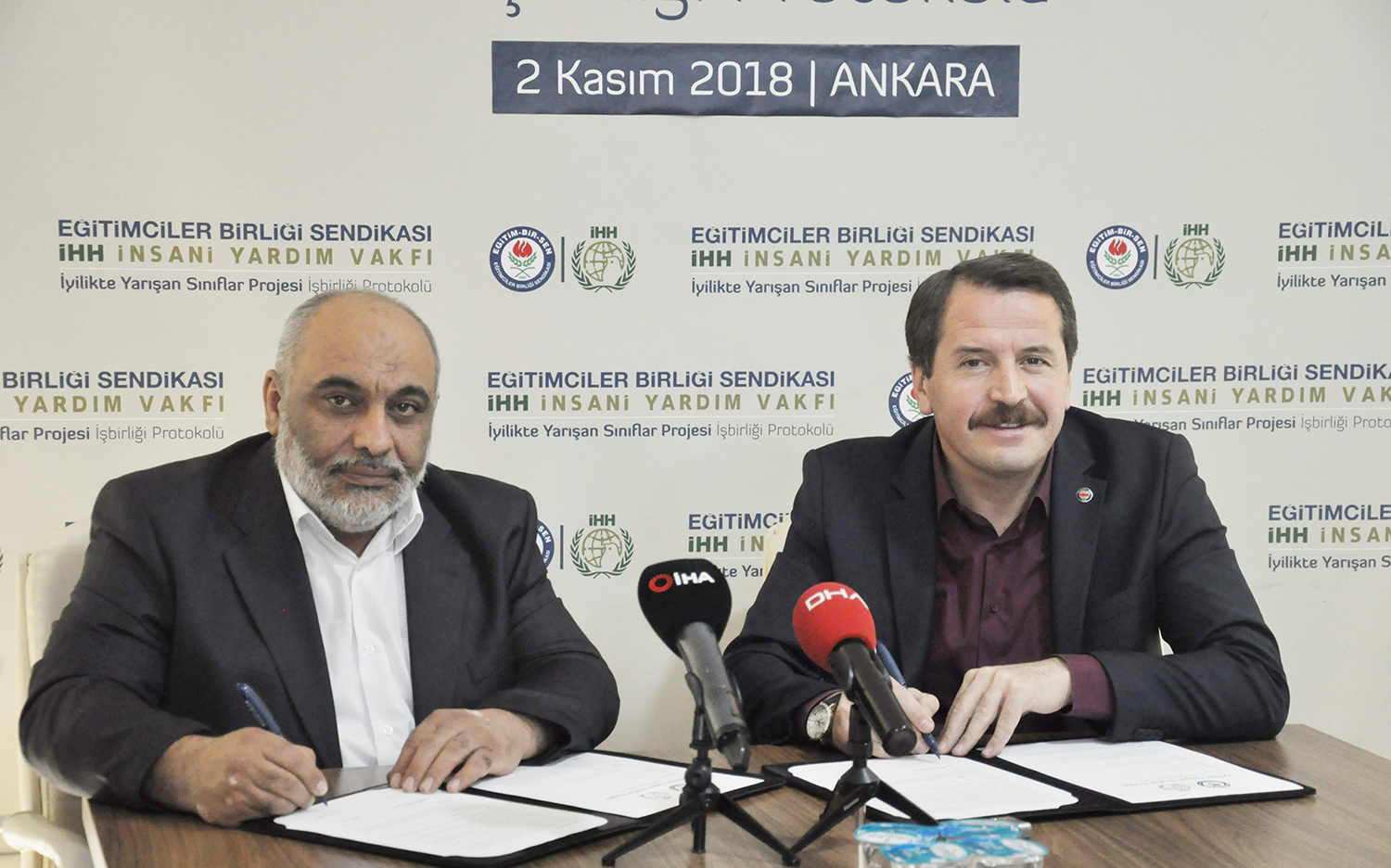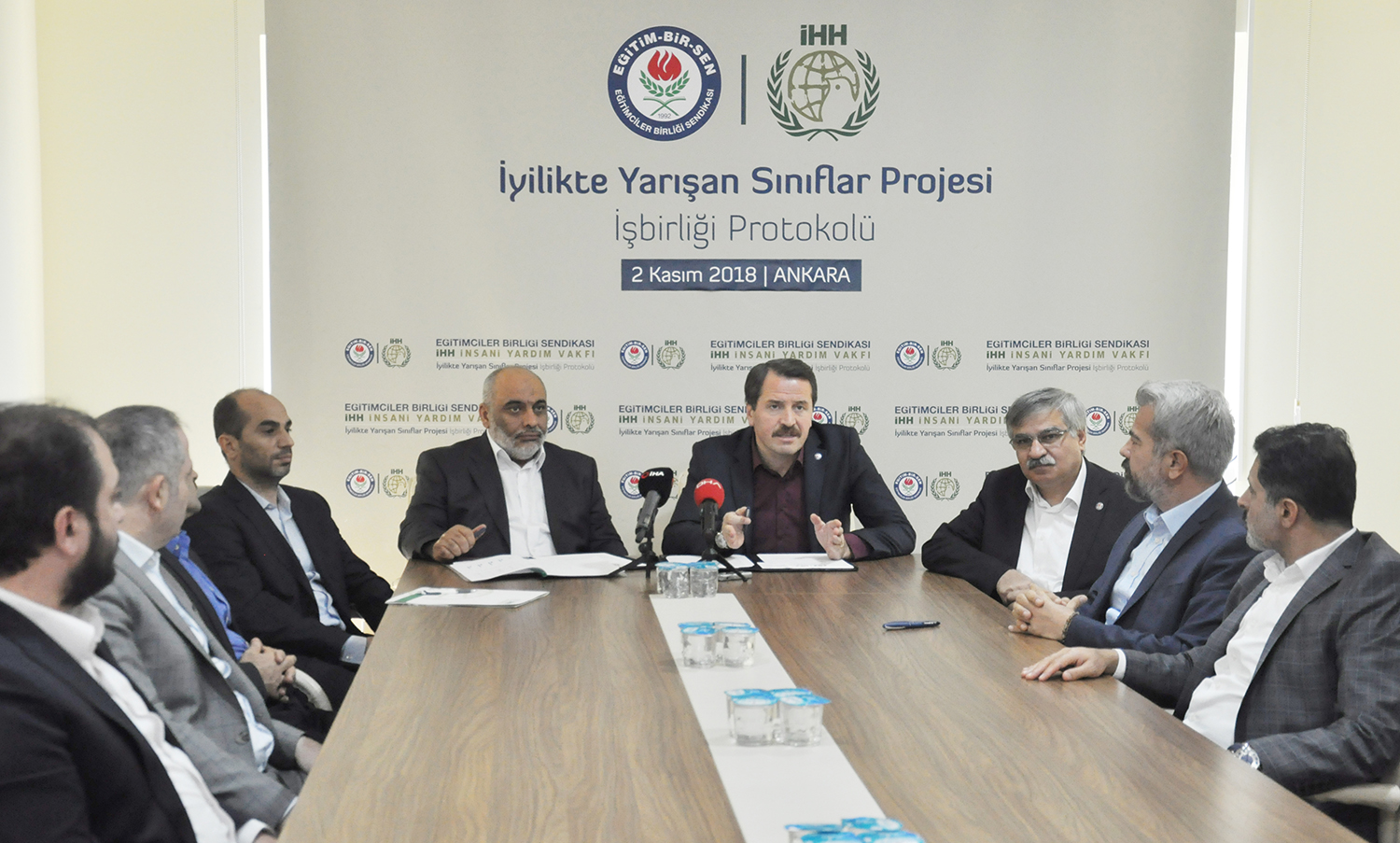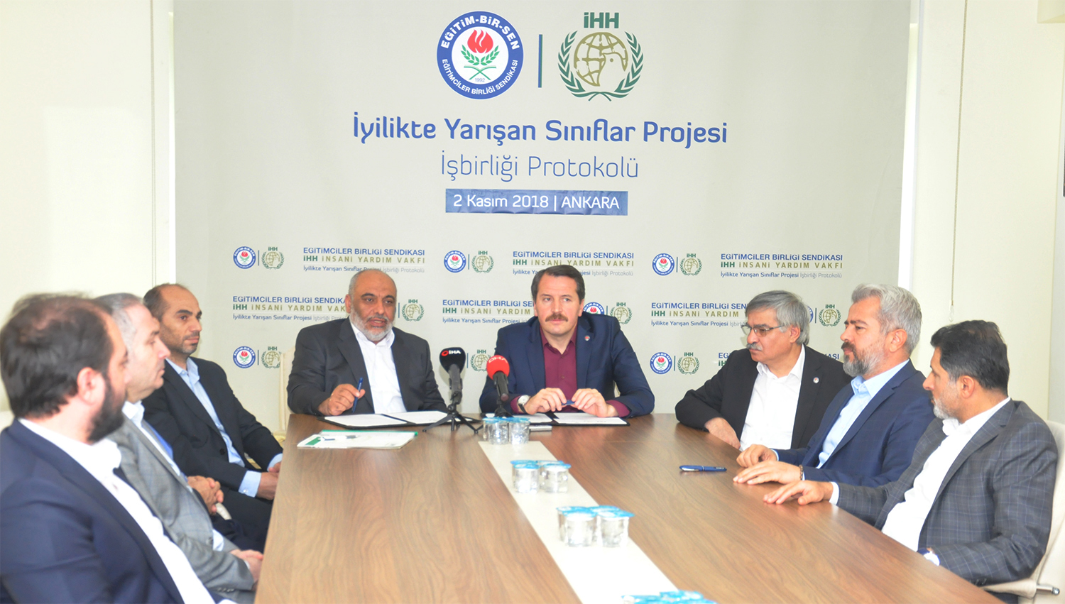Eğitim-Bir-Sen ve İHH arasında “İyilikte Yarışan Sınıflar” projesi iş birliği protokolü imzalandı. İHH Genel Başkanı Bülent Yıldırım, Eğitim-Bir-Sen Genel Başkan Vekili Latif Selvi, Başkan yardımcıları Ramazan Çakırcı, Şükrü Kolukısa, Hasan Yalçın Yayla ve Atilla Olçum’un katılımıyla düzenlenen imza töreninde konuşan Genel Başkan Ali Yalçın, hayata ve insana karşı sorumluluklarının bir gereği olarak medeniyet değerlerimizin pratiğe dönüşmesine büyük önem verdiklerini söyledi.