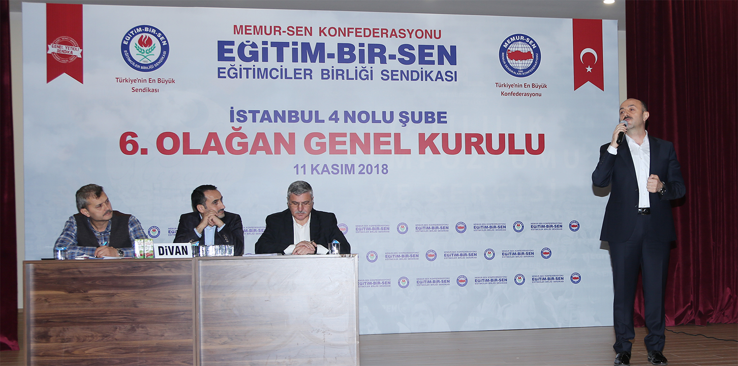 Ramazan Çakırcı, Eğitim-Bir-Sen Ankara 7, Bursa 2 ve İstanbul 4 No’lu şubelerin olağan genel kuruluna katıldı. Genel kurulların bir istişare ve yenilenme süreci olduğunun altını çizen Çakırcı, “Daha önce olduğu gibi, bu genel kurulların da heyecanımızın tazelenmesine, saflarımızın sıklaştırılmasına, birlik ve beraberliğimizin daha da güçlendirilmesine vesile olacağına inanıyorum” şeklinde konuştu.