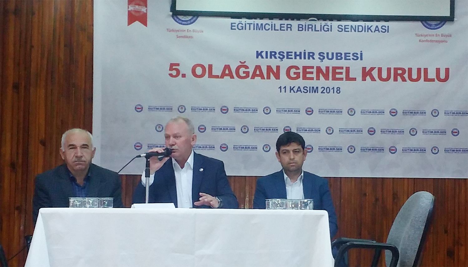 Kırşehir Olağan Genel Kurulu’nda konuşan Mithat Sevin, 26 yıllık tarihiyle, yeni bir anlayışın sendikal hayattaki karşılığı olduklarını belirterek, “Çatışmacı, çözümsüzlükten beslenen sendikal anlayışa karşı beyaz bir sayfa açan, sorunları alt alta sıralamakla yetinmeyen, çözüm odaklı, medeniyet değerlerimizle barışık, milletin yararını esas alan, eğitim çalışanlarının haklarını savunan özgün ve özgür bir sendikacılığın temsilcisiyiz. Sendikal tarihimiz, eyleme dönüşen söylemin, yasaklara direnmenin, özgürlükler için emek harcamanın, ülke meseleleri için elini taşın altına koymanın, haksızlara karşı alanlarda olmanın; mazlumlardan, mağdurlardan yana olmanın, çözümün, kazanımların, başarıların, sendikacılığa çağ atlatmanın tarihtir” ifadelerini kullandı.