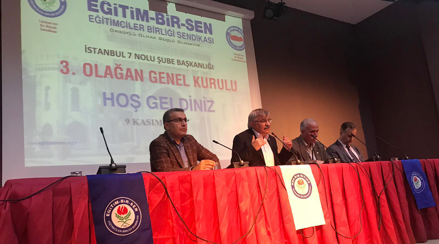 Latif Selvi, İstanbul 7, Kocaeli 2 ve İstanbul 1 No’lu şubelerin olağan genel kurullarında sendikal çalışmalara ilişkin açıklamalarda bulundu. Seçim süreçlerinin, heyecanın tazelendiği, safların sıklaştırıldığı, kardeşliğin pekiştirildiği, birlik ve beraberliğin güçlendirildiği süreçler olduğunu vurgulayan Selvi, “Aynı amaç için yürüyenler, davası bir olanlar, hayırda yarışanlar için kaybetmek yoktur, kazanmak vardır” ifadelerini kullandı.