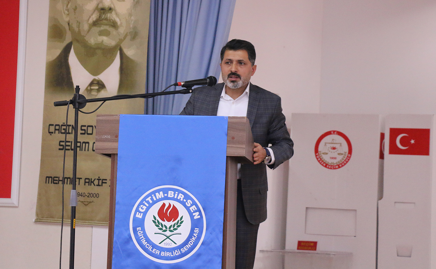 Eğitim-Bir-Sen Genel Başkan Yardımcısı Şükrü Kolukısa, başarılarla dolu 26 yıllık sendikal tarihlerinin, bütün zamanını, heyecanını, varını yoğunu millet, ümmet, insanlık, emek ve özgürlük mücadelesine adayan yürekli insanların eseri olduğunu ifade ederek, “Kuruluşundan zirveye çıkışına, zirveden yeni ufuklara varışına sendikamızın 26 yıllık destanına yön veren değerler vefa, sabır, sebat ve sadakattir. Mücadele tarihimizin tamamında ve her anında, diğerkâm yüreklerin, vefakâr ve cefakâr yiğitlerin alın teri vardır. Hedeflerimiz için çaba harcamaya, ter akıtmaya devam edeceğiz” dedi.