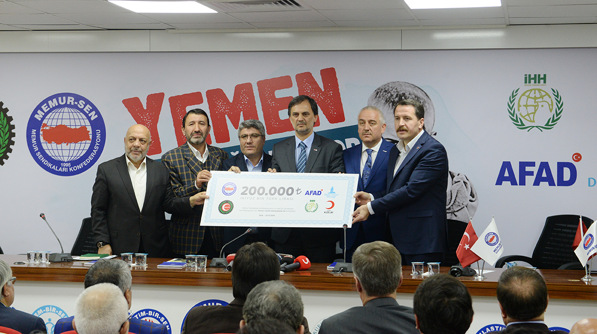 Memur-Sen ve Hak-İş Konfederasyonu, Yemen’deki insani drama ‘dur’ demek için, İHH, Deniz Feneri, Türk Kızılayı ve AFAD ile birlikte, “Yemen İnsanlığı Bekliyor” temasıyla yardım yardım kampanyası başlattı.