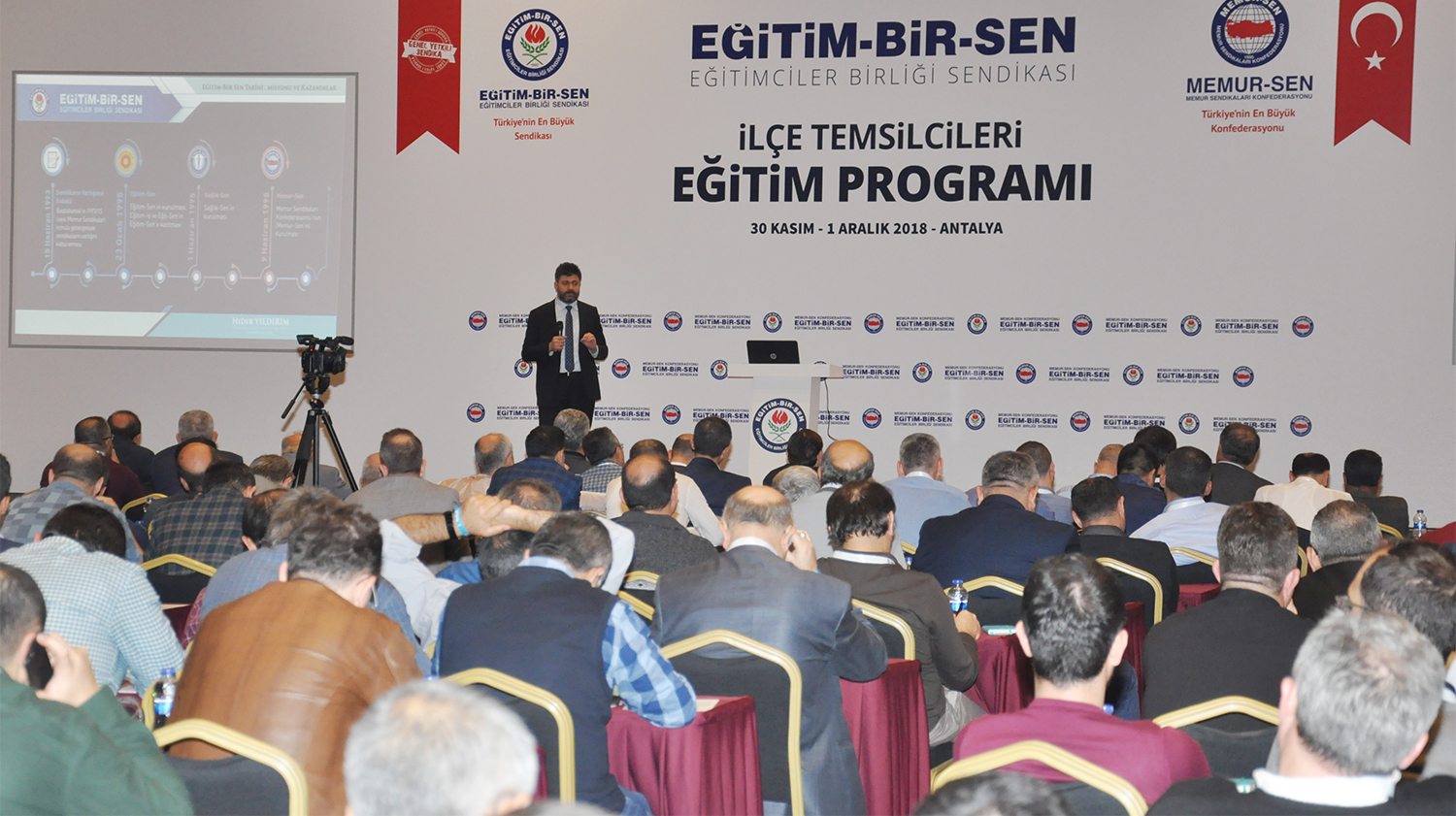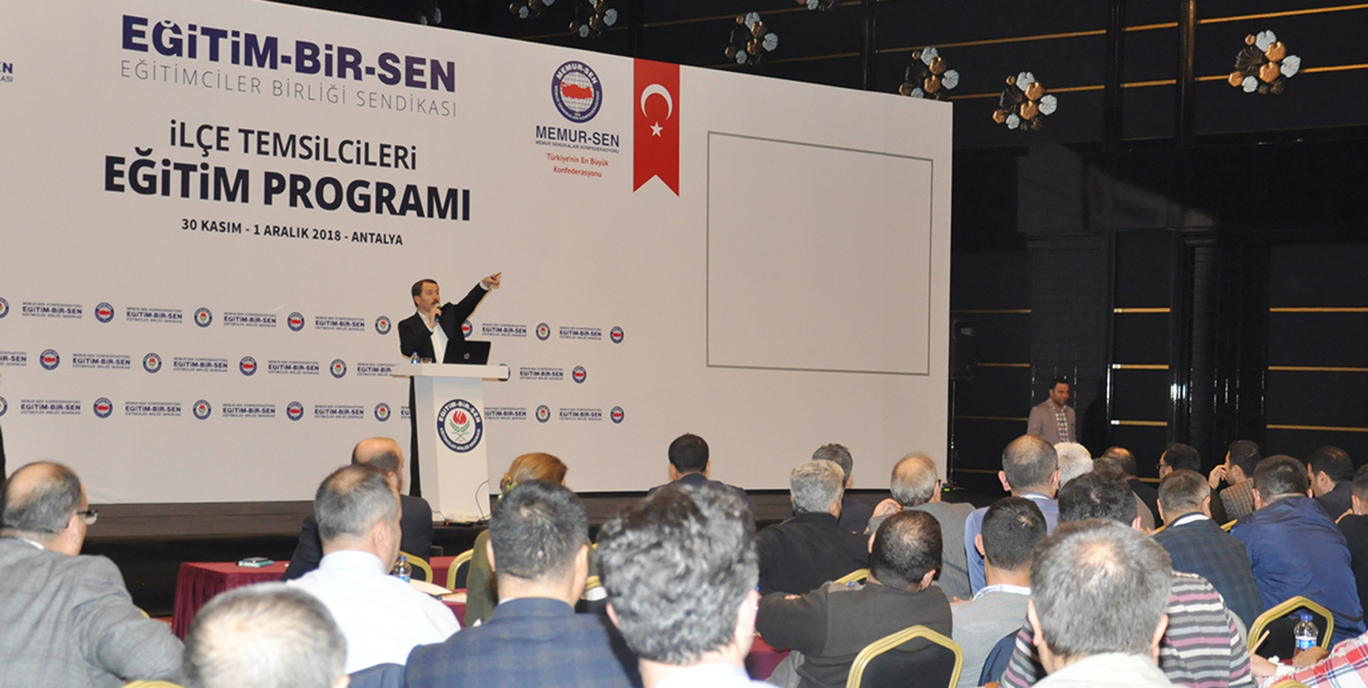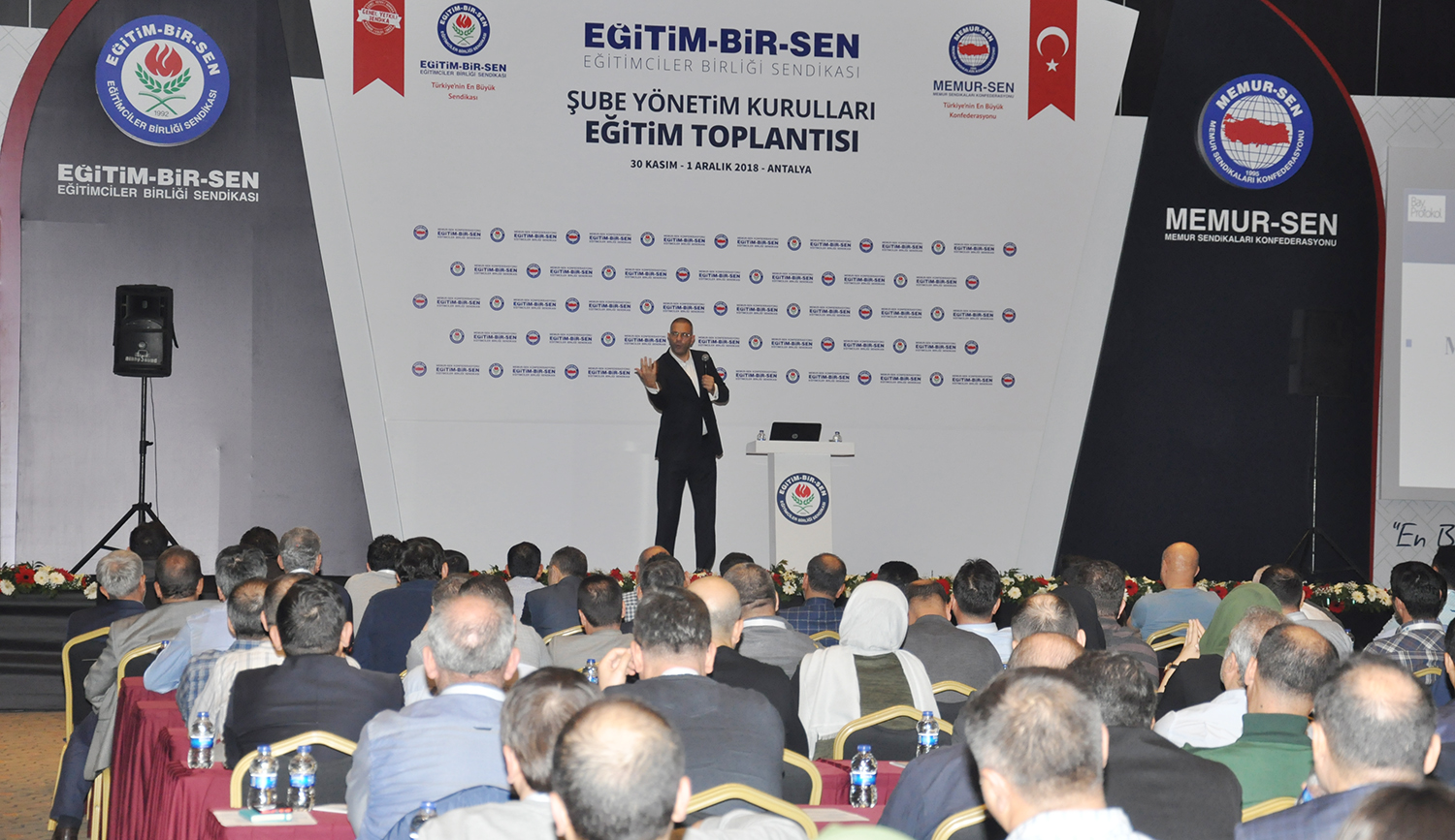 Eğitim gündemine, sendikal çalışmalara, Türkiye’de ve dünyada yaşanan gelişmelere ilişkin değerlendirmelerin yapıldığı, önümüzdeki dönemde yapılması tasarlanan çalışmalarla ilgili istişarelerin edildiği teşkilat eğitim toplantılarında konuşan Genel Başkan Ali Yalçın, vizyon belgelerinde açıkladıkları ‘işimize, içimize ve dışımıza yolculuğun’ her aşamasında mesafe katederek sendikal yürüyüşlerini sürdürdüklerini söyledi.