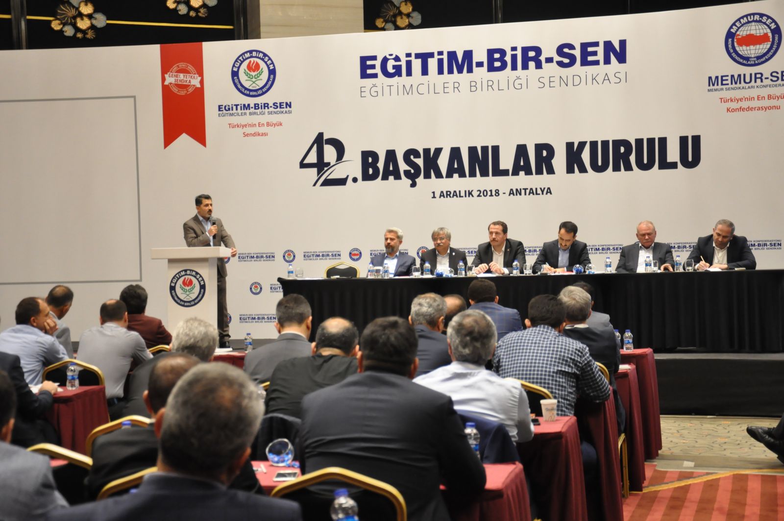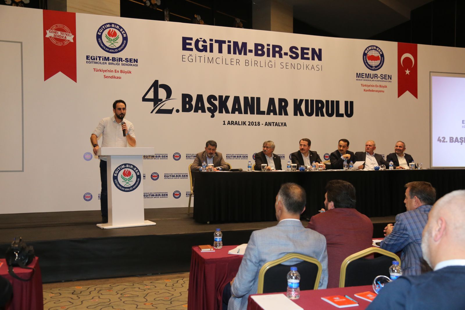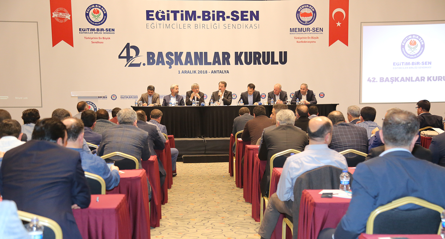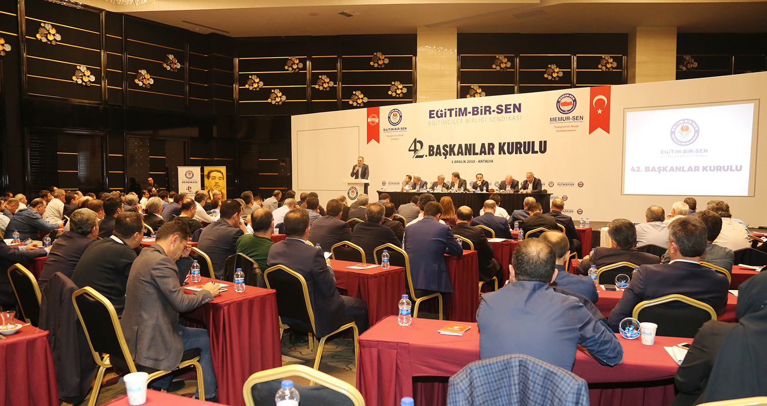 Eğitim-Bir-Sen 42. Başkanlar Kurulu Antalya’da gerçekleştirildi. Eğitim gündemine ilişkin değerlendirmelerin yapıldığı toplantıda, önümüzdeki dönemde yapılması tasarlanan çalışmalarla ilgili istişarelerde bulunuldu.