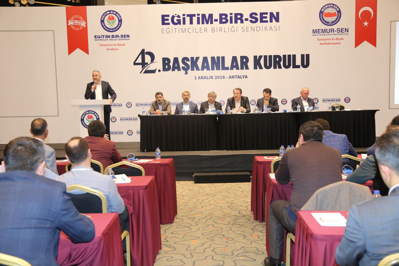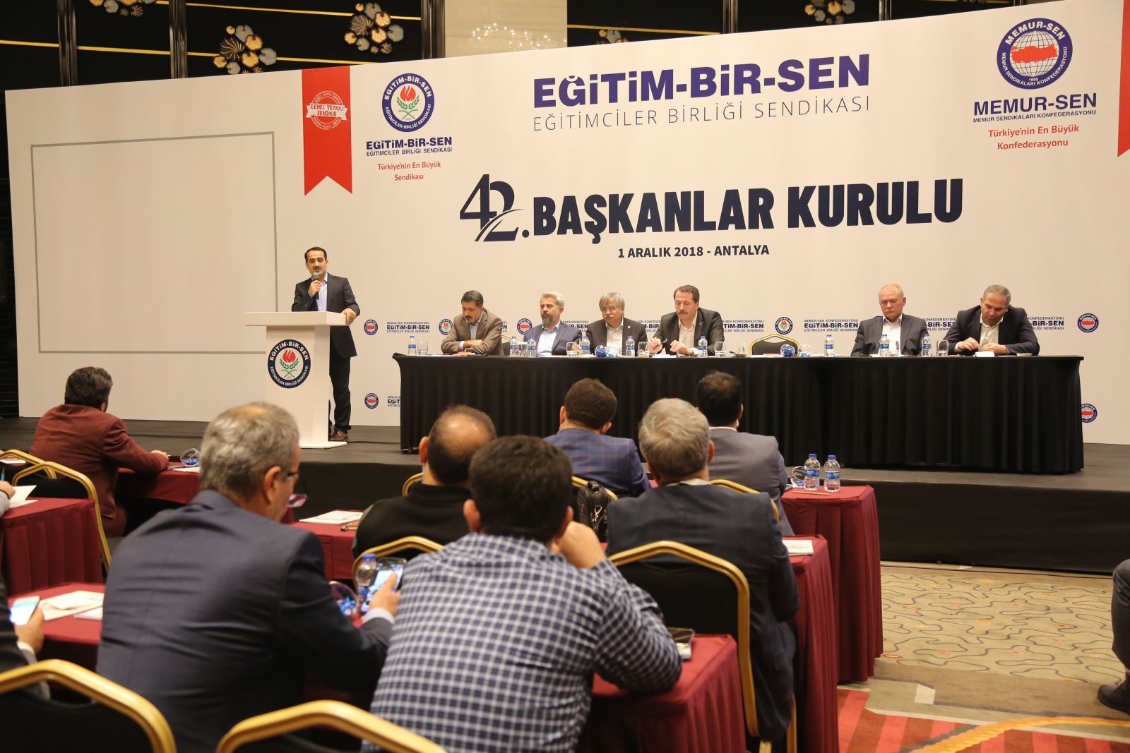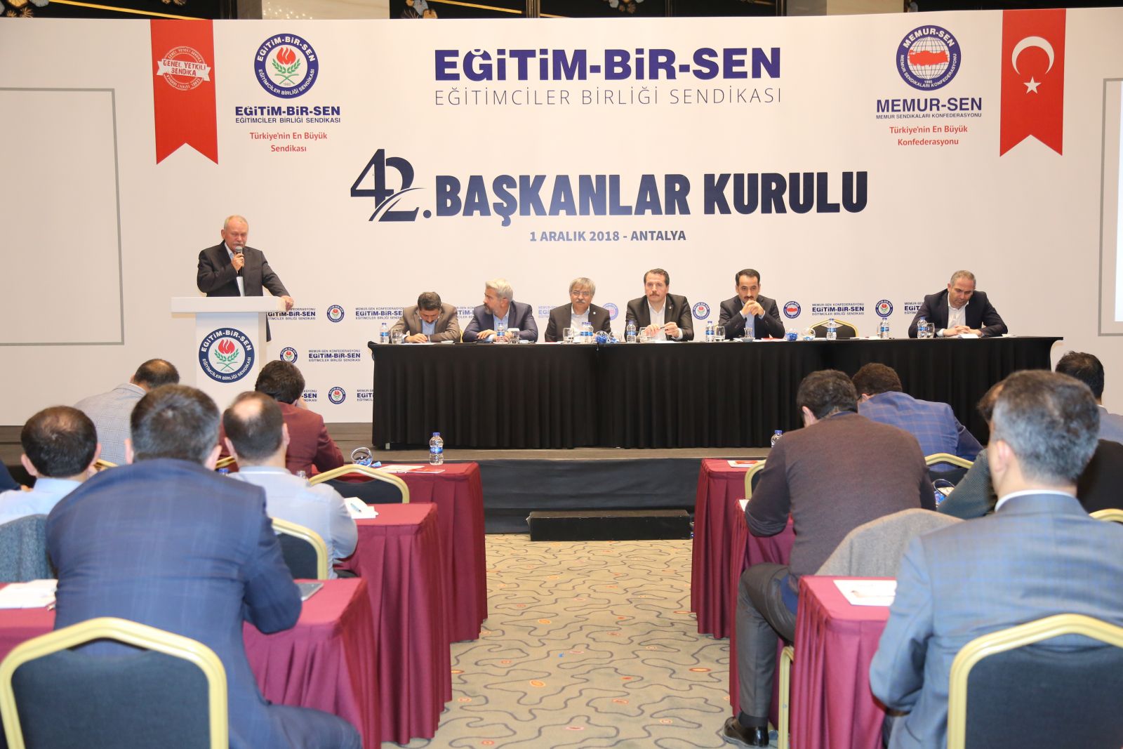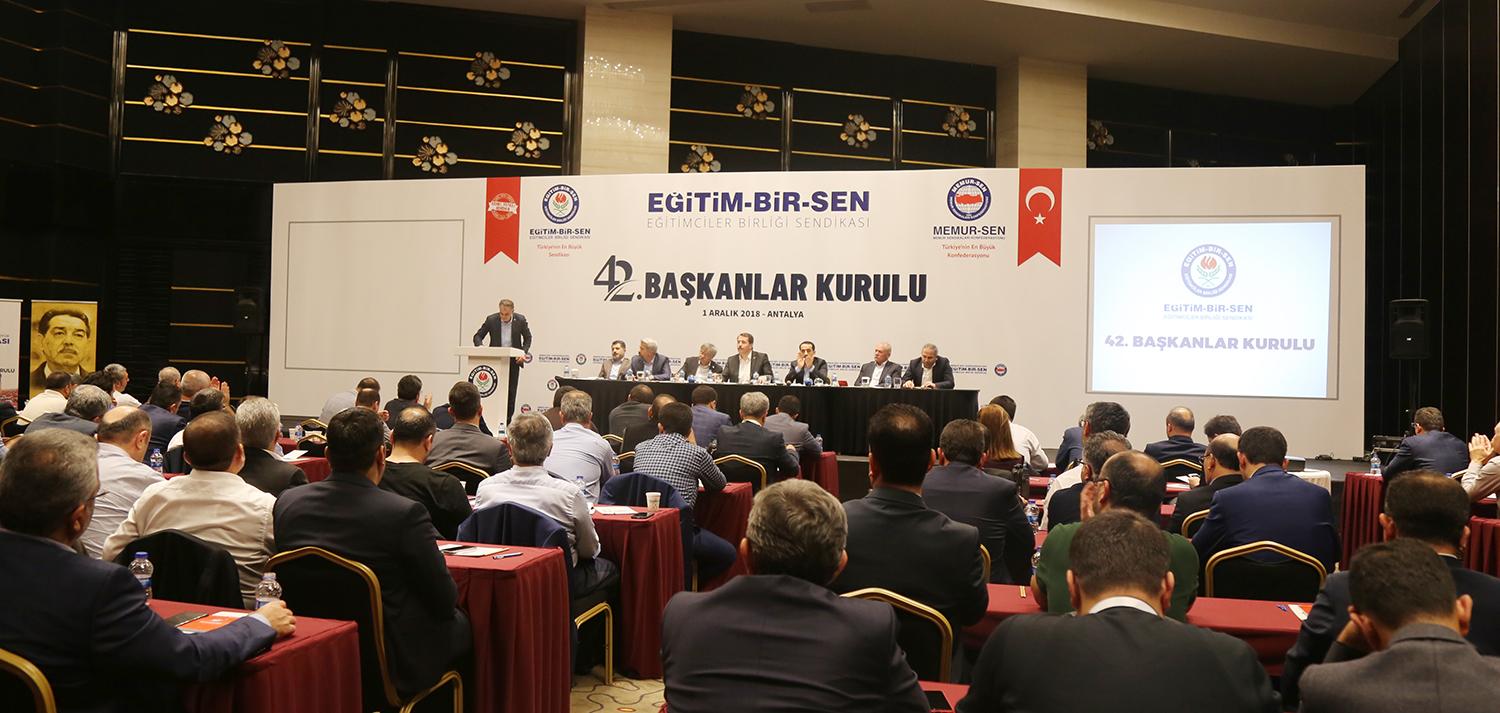Eğitim-Bir-Sen 42. Başkanlar Kurulu Antalya’da gerçekleştirildi. Eğitim gündemine ilişkin değerlendirmelerin yapıldığı toplantıda, önümüzdeki dönemde yapılması tasarlanan çalışmalarla ilgili istişarelerde bulunuldu.