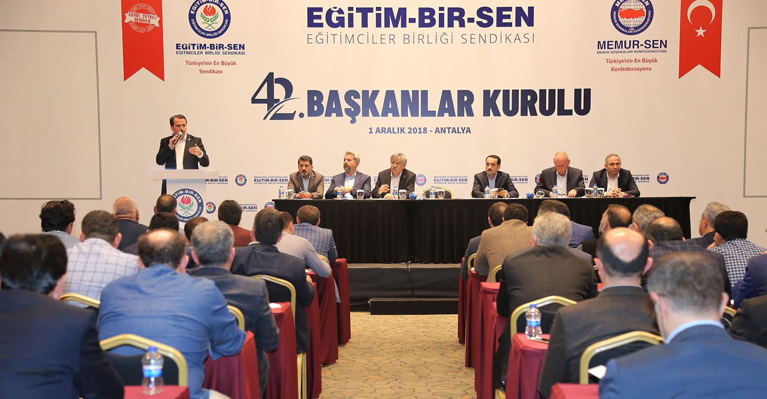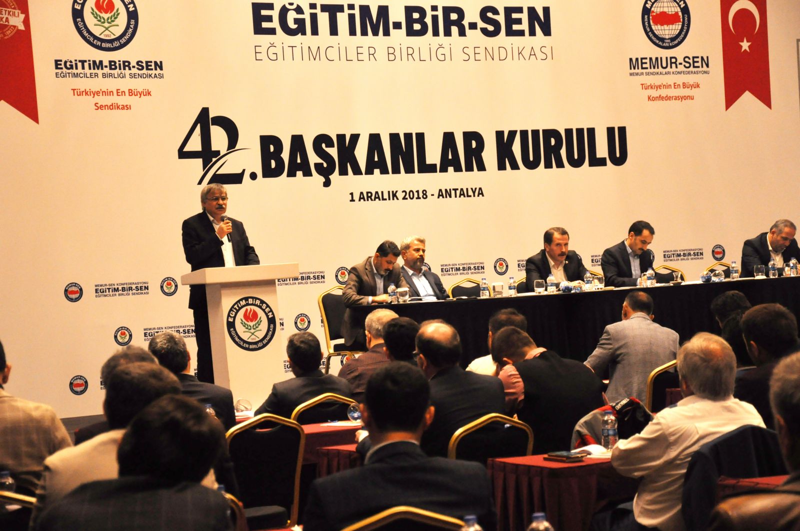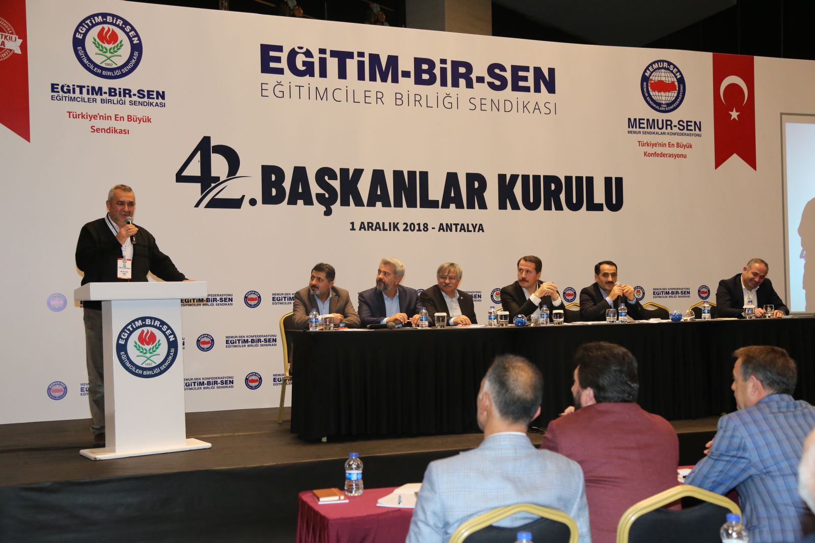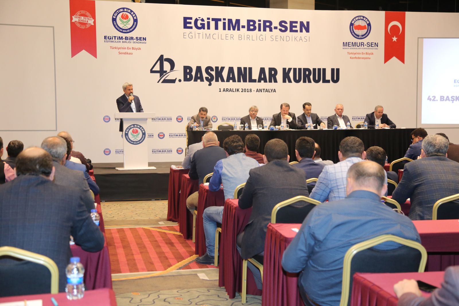 Eğitim-Bir-Sen 42. Başkanlar Kurulu Antalya’da gerçekleştirildi. Eğitim gündemine ilişkin değerlendirmelerin yapıldığı toplantıda, önümüzdeki dönemde yapılması tasarlanan çalışmalarla ilgili istişarelerde bulunuldu.