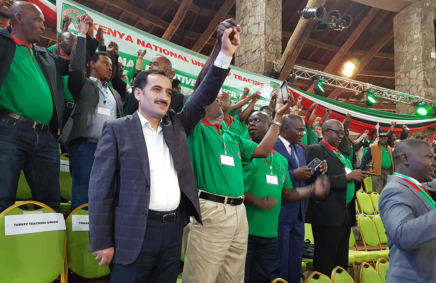 Eğitim-Bir-Sen Genel Başkan Yardımcısı Ramazan Çakırcı, Kenya Ulusal Öğretmenler Sendikası’nın (KNUT) Nairobi’de düzenlediği 61. yıl delege konferansı ve genel kuruluna katıldı. “Eğitim Hakkı Nitelikli Öğretmenle Yaşam Bulur” başlıklı konferansta bir konuşma yapan Ramazan Çakırcı, eğitim-öğretim ve bilim hizmet kolunun yetkili sendikası olarak, verdikleri mücadele sonucunda önemli kazanımlar elde ettiklerini, eğitime ilişkin nitelikli çalışmalar yaptıklarını söyledi.