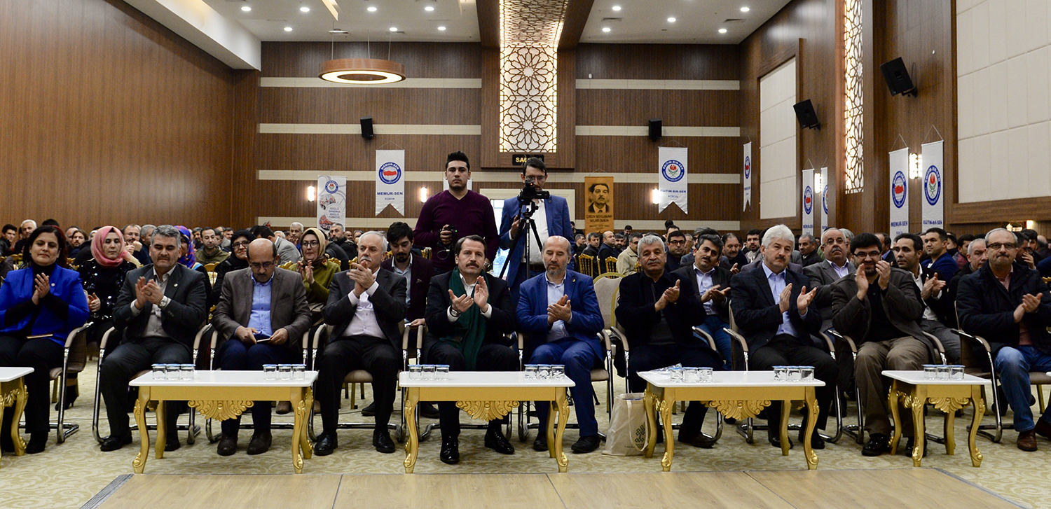 Konya 1 No’lu Şube’nin genişletilmiş divan toplantısında konuşan Ali Yalçın, Eğitim-Bir-Sen’in, vesayet ve esaret kabuğunu bilgi, inanç ve eylemle kıran milletin entelektüel birikimi olduğunu belirterek, “Bizim mayamız uhuvvet, ilkemiz adalettir” ifadeleri kullandı.
