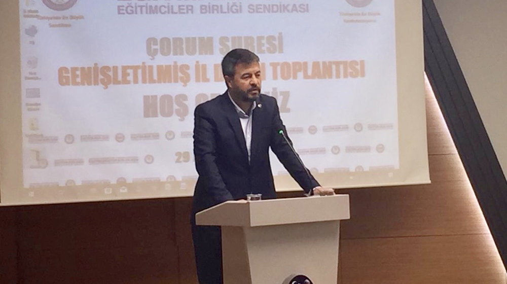 Eğitim-Bir-Sen Çorum Şube Başkanı Tekin Çınar da bir konuşma yaparak, yapmayı tasarladıkları çalışmalarla ilgili bilgi verdi.