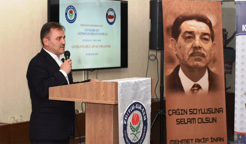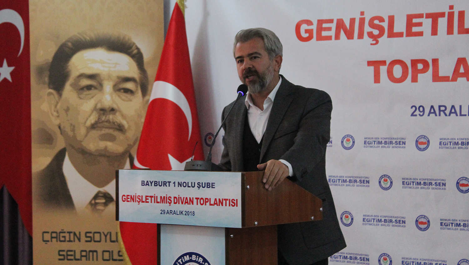 Eğitim-Bir-Sen Genel Başkan Yardımcısı Atilla Olçum, eğitim çalışanlarının haklarını koruma ve artırma, hukukuna teminat olma sorumluluğu ve motivasyonuyla hareket ettiklerini belirterek, “Eğitimi, hem kavram hem de sistem olarak ilgi ve etki sahamız içerisinde görerek yürüttüğümüz faaliyetleri de bu sorumluluğun ayrılmaz parçası olarak görüyoruz. Bu nedenle, eğitim çalışanlarının sorunlarını tespit edip çözüm önerilerimizi yetkililere iletirken, eğitimle ilgili konularda da sessiz kalmadık, kalmayacağız. Hakları için ter akıttığımız eğitim çalışanlarının emeğinin değer bulması, fikir ve eylemlerinin toplum ve devlet nezdinde değerli olması için hep öncü olduk, bütün süreçlerde paydaş olduk, doğruyu ifade ettik, yanlışa karşı çıktık. Milli Eğitim Bakanlığı, ücretli-sözleşmeli gibi uygulamalara son vermeli, öğretmenlik bir kariyer mesleği olmalıdır” dedi.
