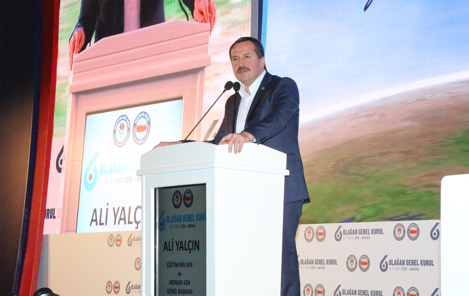 Ali Yalçın, yeni dönemde daha da kavileşecek, güçlü hâle gelecek, hem üye sayısını artırma hem de sendikalı sendikasız herkesi ‘sen yoksan bir eksiğiz’ diyerek herkesi Eğitim-Bir-Sen çatısı altında toplama hedeflerini devam ettireceklerini dile getirerek, teşkilata, gösterdiği olgunluk; adaylara, kongredeki heyecan ve nezaketleri için teşekkür etti.