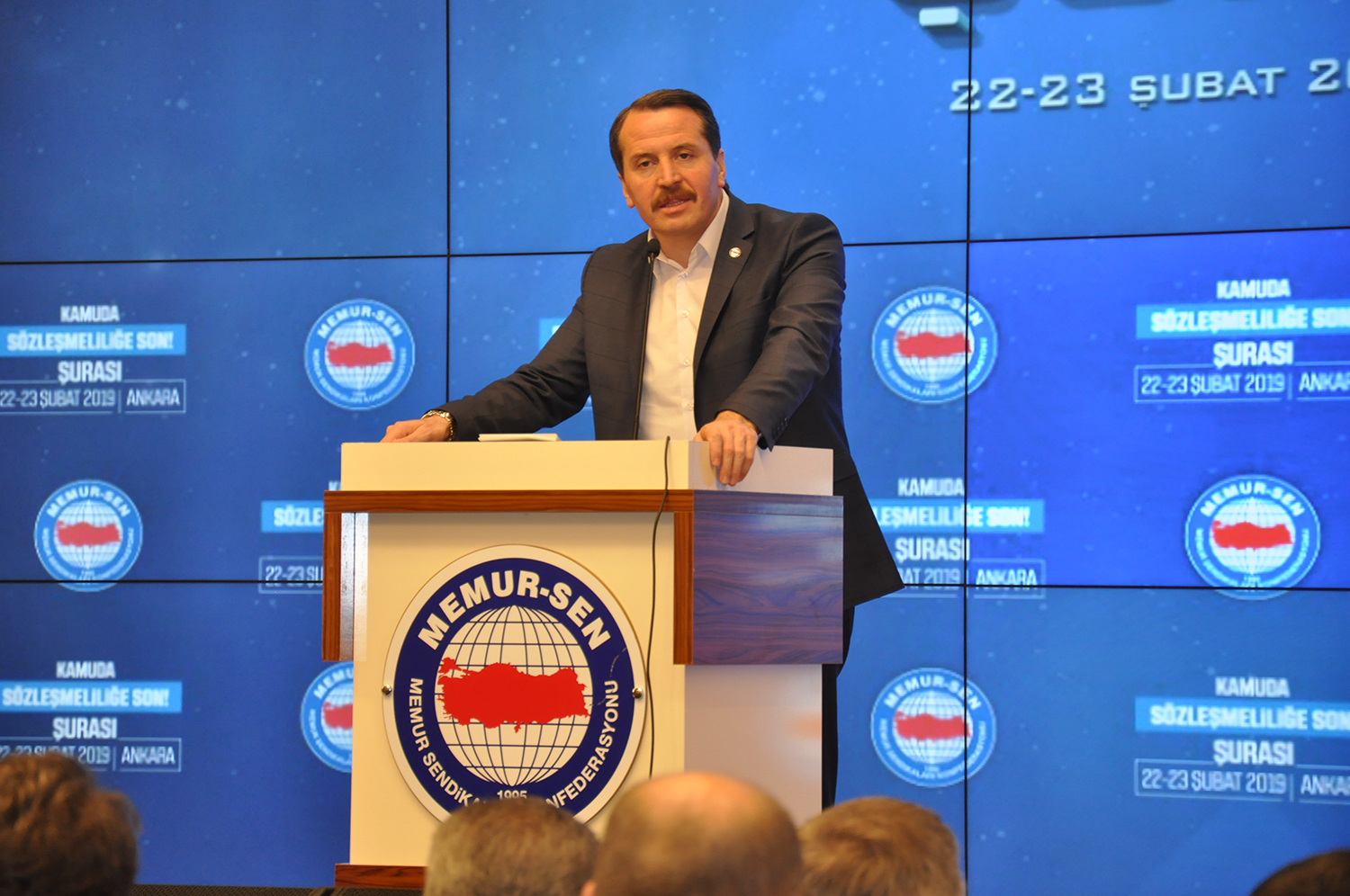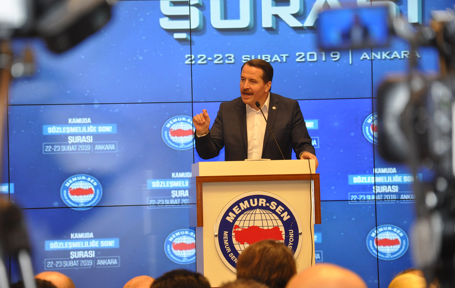 4/C’lilerin önce çalışma sürelerini, sonra izin sürelerini artıran, maaşlarının artmasını sağlayan, sosyal haklarının kapsamını artıran, sendika üyesi olma hakkına kavuşmasını sağlayanın da Memur-Sen olduğunu dile getiren Yalçın, şöyle konuştu: “Geçici personel istihdamına, yani 4/C’yi kamu personel sisteminin dışına iten, modern kölelik uygulamasına son veren de Memur-Sen’dir. Biz, Memur-Sen ve bağlı sendikaları olarak, kamu personel sisteminin mevzuattan ve mevcut uygulamalarından kaynaklanan sorunlarını görmek ve çözmek noktasında zorlanmıyoruz. Kamu görevlilerinin taleplerini, beklentilerini, tepkilerini görmekte, anlamakta ve anlatmakta güçlük çekmiyoruz. Çünkü Memur-Sen olarak, hem konfederasyon hem de sendikalar düzeyinde tabandan tavana, sahadan masaya, sorundan çözüme, bireyden kitleye, hükümden hukuka, imkândan hakka doğru sendikacılık yapıyoruz.”