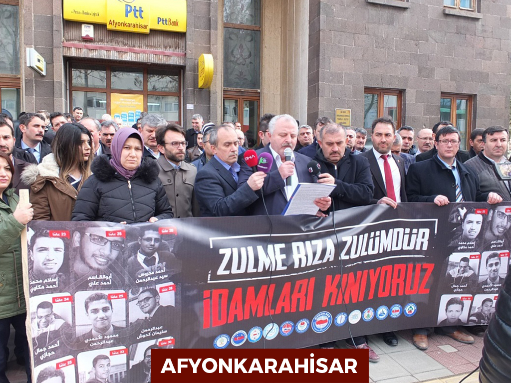 Mısır’daki darbeci yönetimin 9 Mısırlı genci idam etmesini 81 ilde ortak basın açıklaması yaparak protesto ettik.