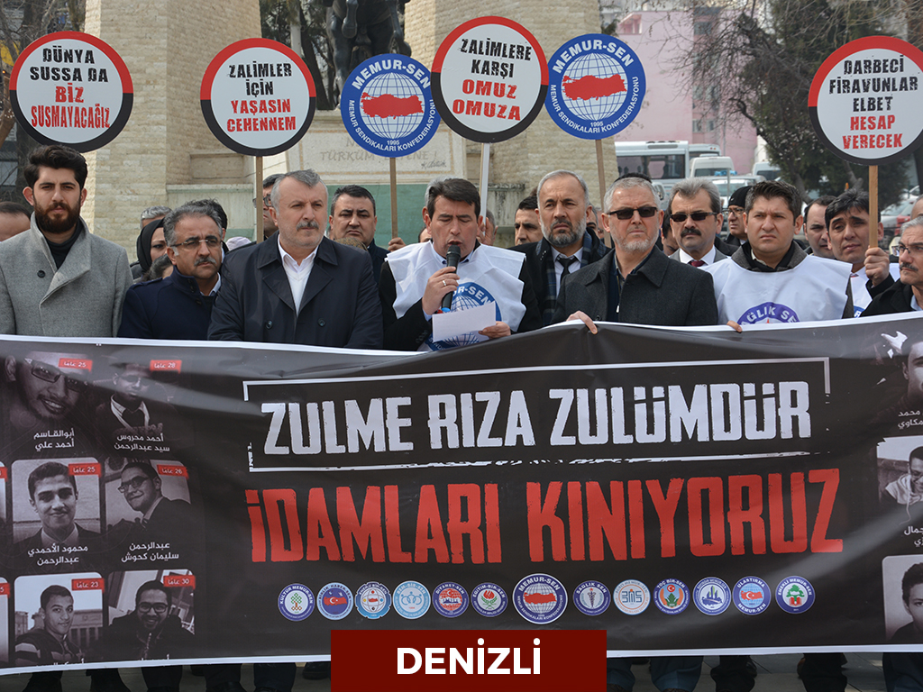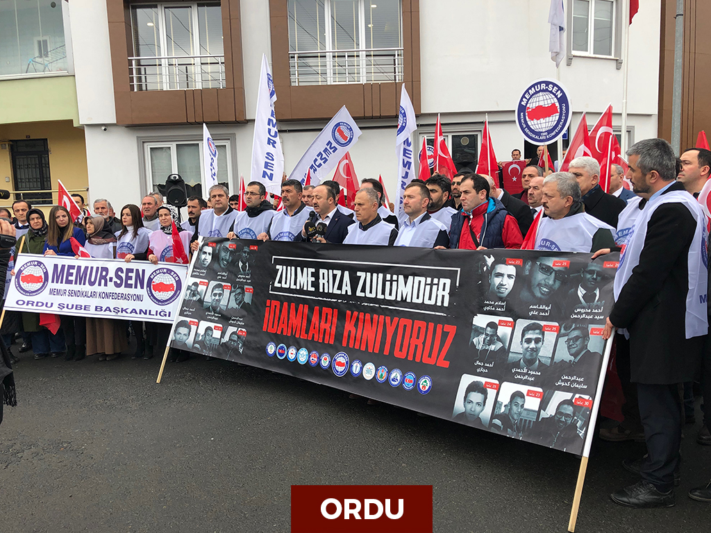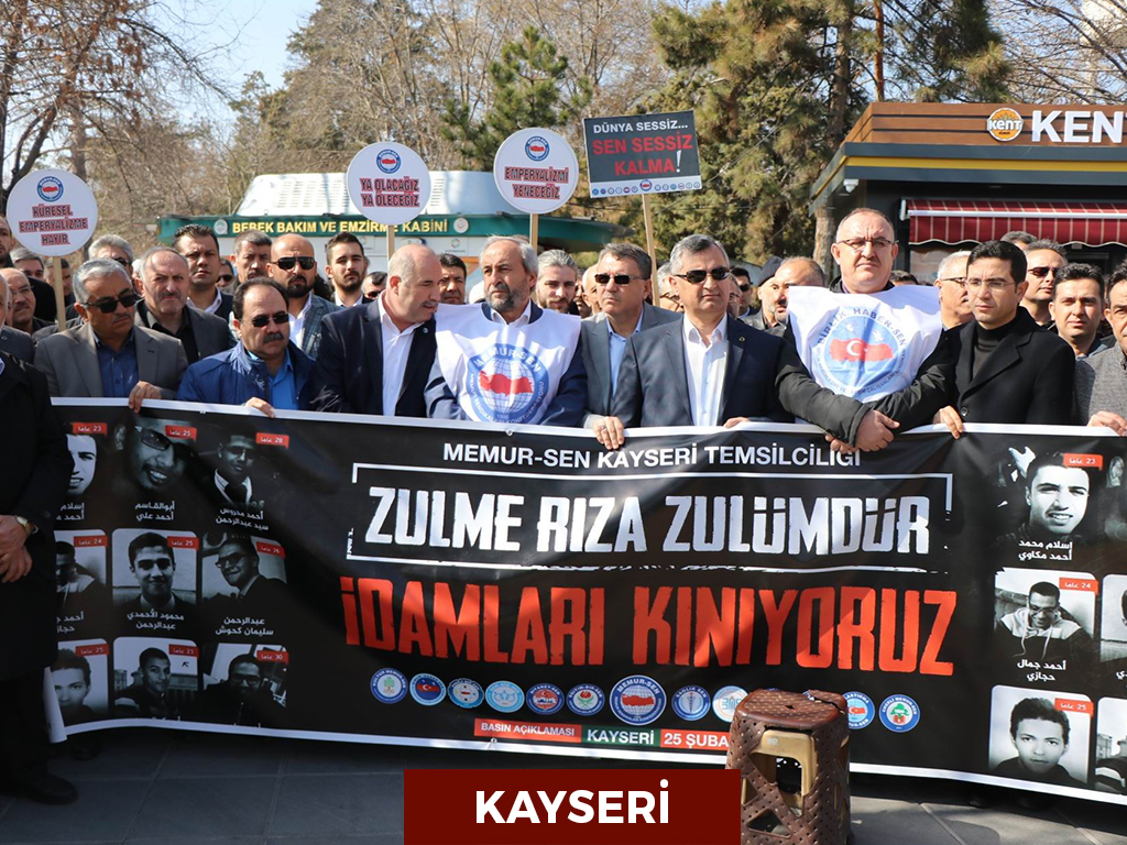 Seçilmiş Cumhurbaşkanı Muhammed Mursi’nin darbeyle görevden uzaklaştırılmasından bu yana yönetimde bulunan darbecilerin hukuksuz yargılamaları 9 can daha aldı. Uluslararası Af Örgütü’nün tüm çağrılarına rağmen gerçekleştirilen idamlara tepki gösteren Memur-Sen teşkilatları, “Firavunlaşan Sisi cuntasının idamlarını durdurmak için insanlık ayağa kalkmalıdır” diye haykırdı.