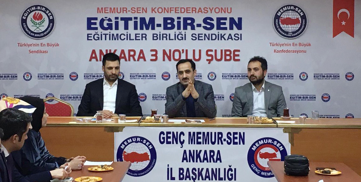 Eğitim-Bir-Sen Genel Başkan Yardımcısı Ramazan Çakırcı, Genç Memur-Sen Ankara Temsilciliği’nin düzenlediği ‘Teşkilat Eğitim Programı’na katıldı. Sendikal çalışmaların ve eğitim gündeminin de değerlendirildiği programda konuşan Ramazan Çakırcı, gençlerin Türkiye’nin geleceği olduğunu ifade ederek, “İyi yetişmiş gençlere sahip olmayan bir ülke yarınından emin olamaz. Bunun farkında olduğumuz, güvenli yarınlara emin adımlarla yürümenin yolunun gençlerden geçtiğinin bilincinde olduğumuz; ülkemizin geleceğine, gençliğine, eğitimine, tarihine söyleyecek sözümüz olduğu için ‘Bir Bilenle Bilge Nesil’ projesini hayata geçirdik. Gençlerimizin fikren, manen ve ilmen çok iyi yetişmesi için çalışmalar yapıyor, bu anlamda elimizi taşın altına koyuyoruz” dedi.