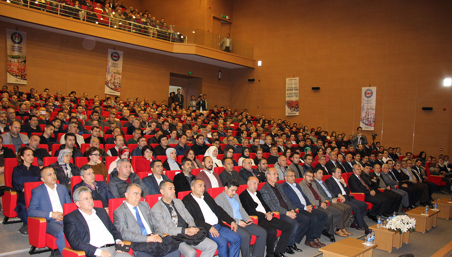 “11 hizmet kolunda da yetkiliyiz ve 5 milyona yakın insanın toplu sözleşme masasındaki beklentisini karşıladık” diyen Yalçın, sözlerini şöyle sürdürdü: “Memur-Sen, sancısı ve derdi olan bir ailedir. Memur-Sen, yaptığı çalışmalarla başarılı bir grafik çizdi ve tüm kamu kurumlarında üyesi bulunmaktadır. Burası Türkiye’nin entelektüel kapasitesi. Onun için bu teşkilatın hayatı görme bakış açısı, işi tutma ve iş görme kabiliyeti farklıdır. Memur-Sen, 2000’den sonraki darbe girişimlerinde millet iradesinin yanında durdu, 15 Temmuz’da alanlara ilk çıkan teşkilat olarak tarihe kaydoldu. ‘Eğitim-Bir-Sen iyi ki var’ cümlesinin altında, 12 milyon 300 bin imzayı bir ayda, kar kış, yağmur çamur demeden toplayıp kamusal alan yalanını tarihin çöp sepetine gönderen büyük bir ailenin başarısı var.”
