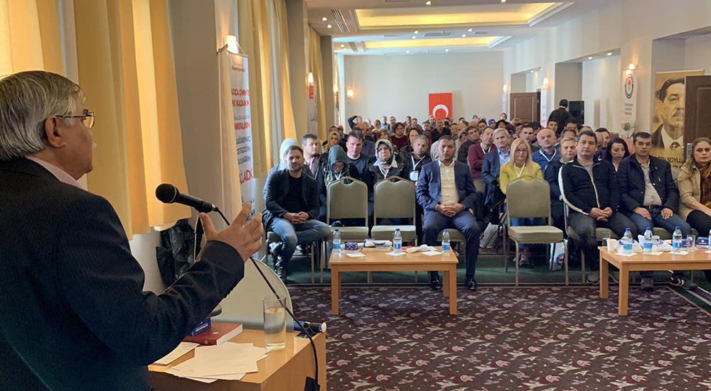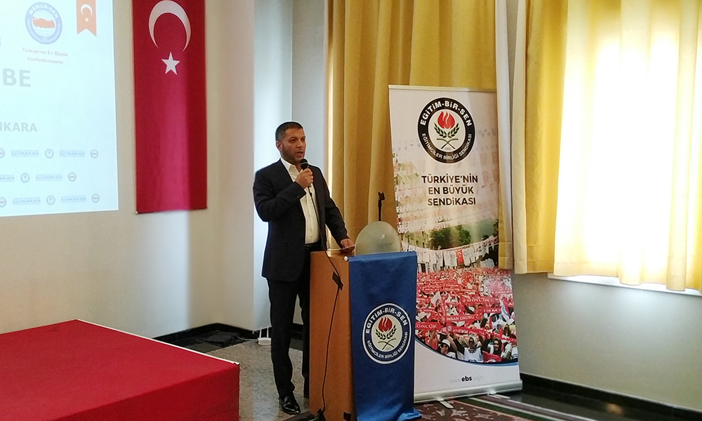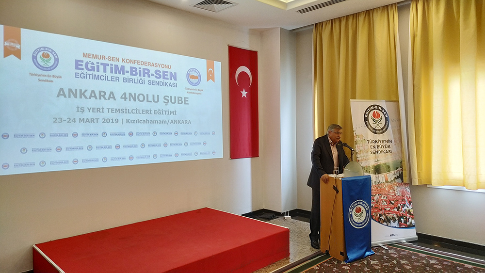 Ankara 4 No’lu Şube’nin düzenlediği işyeri temsilcileri eğitim programında konuşan Latif Selvi, üreten, fikir bildiren, engel kaldıran bir tavırla yasaklara karşı çıktıklarını, özlük ve özgürlük mücadelesi verdiklerini dile getirerek, “Bu mücadelemizle, duruşumuzla hem eğitim çalışanlarını sendikalı yapmanın hem de sendika için çalışanları eğitimli sendikacı yapmanın çatısını kurduk. Teşkilat eğitim programlarımız; sendikayı, sendikacılığı, küresel sendikal kulvarı ve evrensel sendikal hakları bilen sendikacıların yetişmesine imkân ve fırsat veriyor. Örgütlenmedeki gücümüz, teşkilatımızın kapasitesi ve sendikacılığımızdaki yüksek birikim değişim üretiyor, gelişim kaydediyor” ifadelerini kullandı.