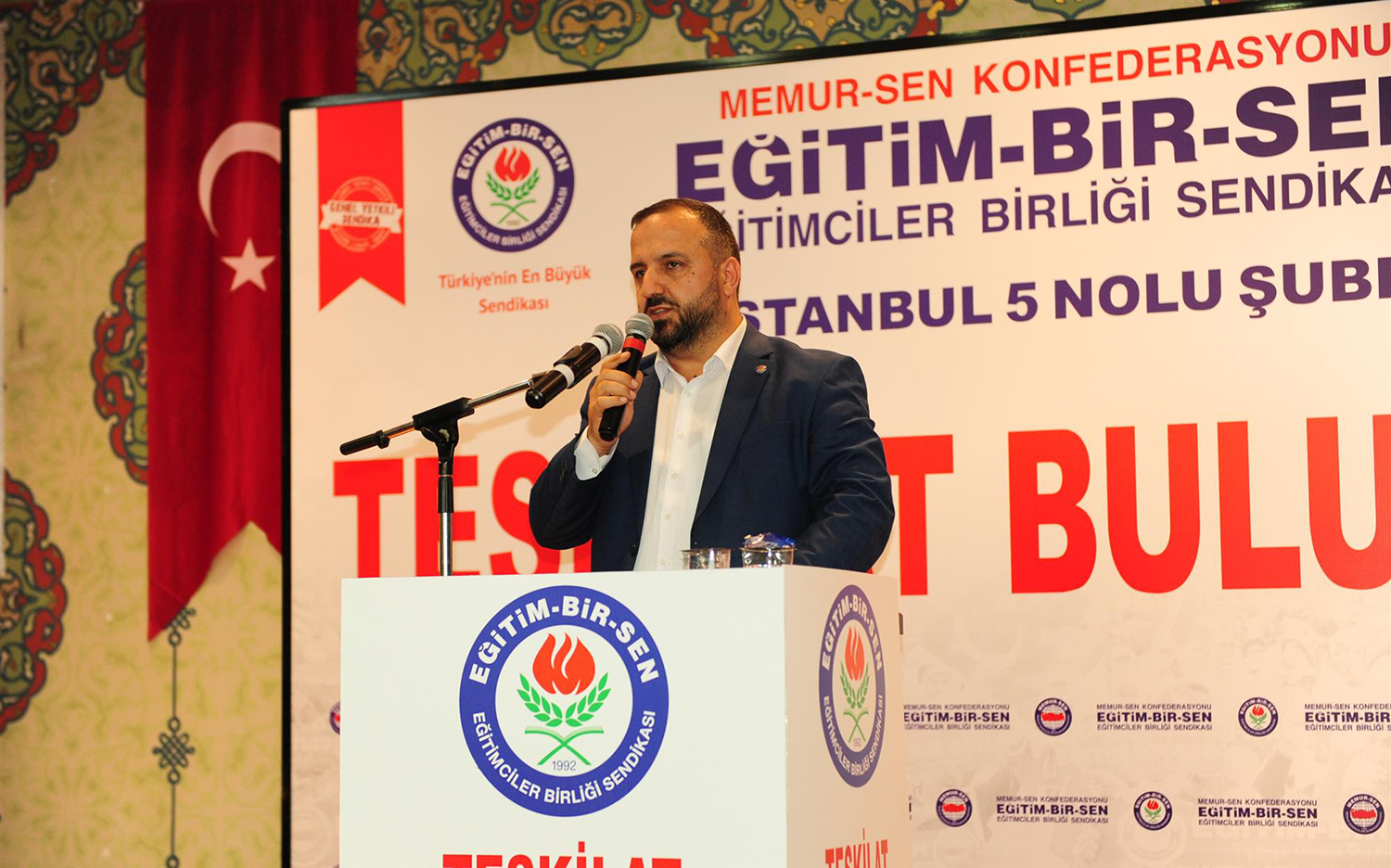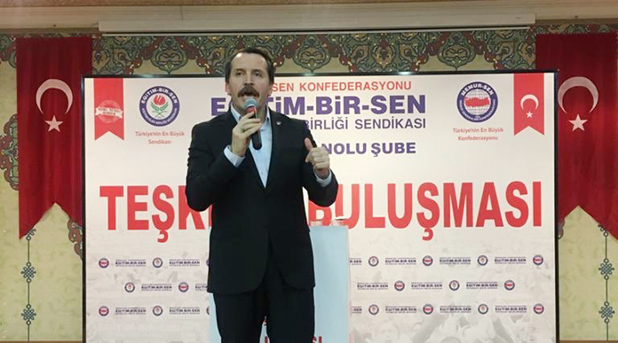 Eğitim-Bir-Sen ve Memur-Sen Genel Başkanı Ali Yalçın, yaşanabilir bir ülke ve adil bir dünya için mücadele verdiklerini belirterek, “Vesayetin olmadığı, postal sesinin duyulmadığı, korku tünelinde çıkmış, ham demokrasisi tam demokrasi olmuş, yürüyen ve büyüyen bir ülke idealidir bizi koşturan ve konuşturan. Sendikacılığı iyiliği önermenin ve kötülüğü önlemenin iz düşümü olarak gördük. Milletle hareket ettik, milletle ter döktük. Çünkü biz, işi millet, derdi millet, kendi millet ve yükü medeniyet olan, alın terini akıl teriyle harmanlayan bir sendikayız” dedi.