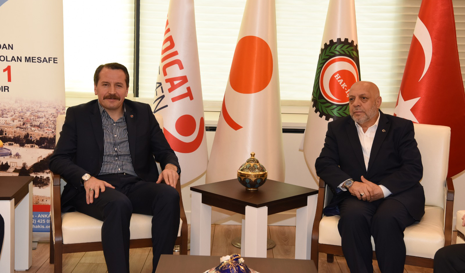 Çalışma hayatı ve sendikal faaliyetlerle ilgili değerlendirmelerin de yapıldığı ziyarette Ali Yalçın, Hak-İş ve Hizmet-İş Genel Başkanı Mahmut Arslan’a ve Genel Yönetim Kurulu’na yeni dönemde de başarılar diledi.