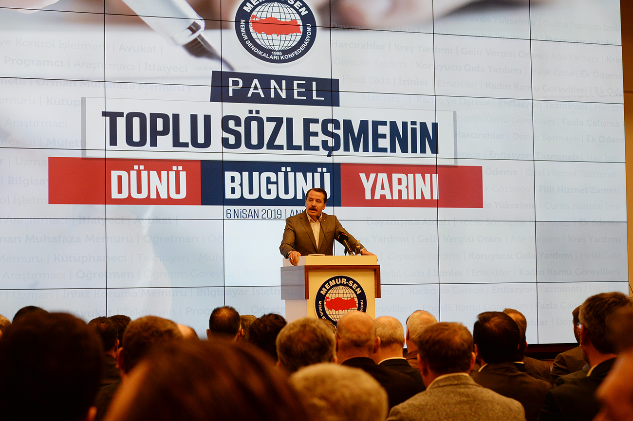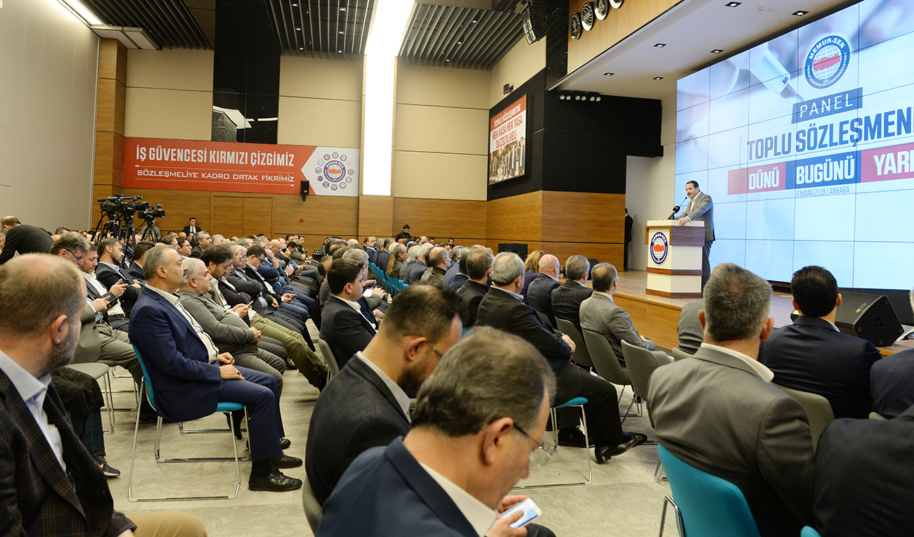 Memur-Sen tarafından organize edilen “Toplu Sözleşmenin Dünü Bugünü Yarını Paneli,” Memur-Sen Genel Başkanı Ali Yalçın, Çalışma ve Sosyal Güvenlik eski Bakanı Faruk Çelik, Cumhurbaşkanlığı Sosyal Politikalar Kurulu üyesi Prof Dr. Vedat Bilgin ve alanında uzman çok sayıda akademisyen ve çalışma hayatı uzmanının katılımıyla Memur-Sen Genel Merkezi’nde gerçekleştirildi.