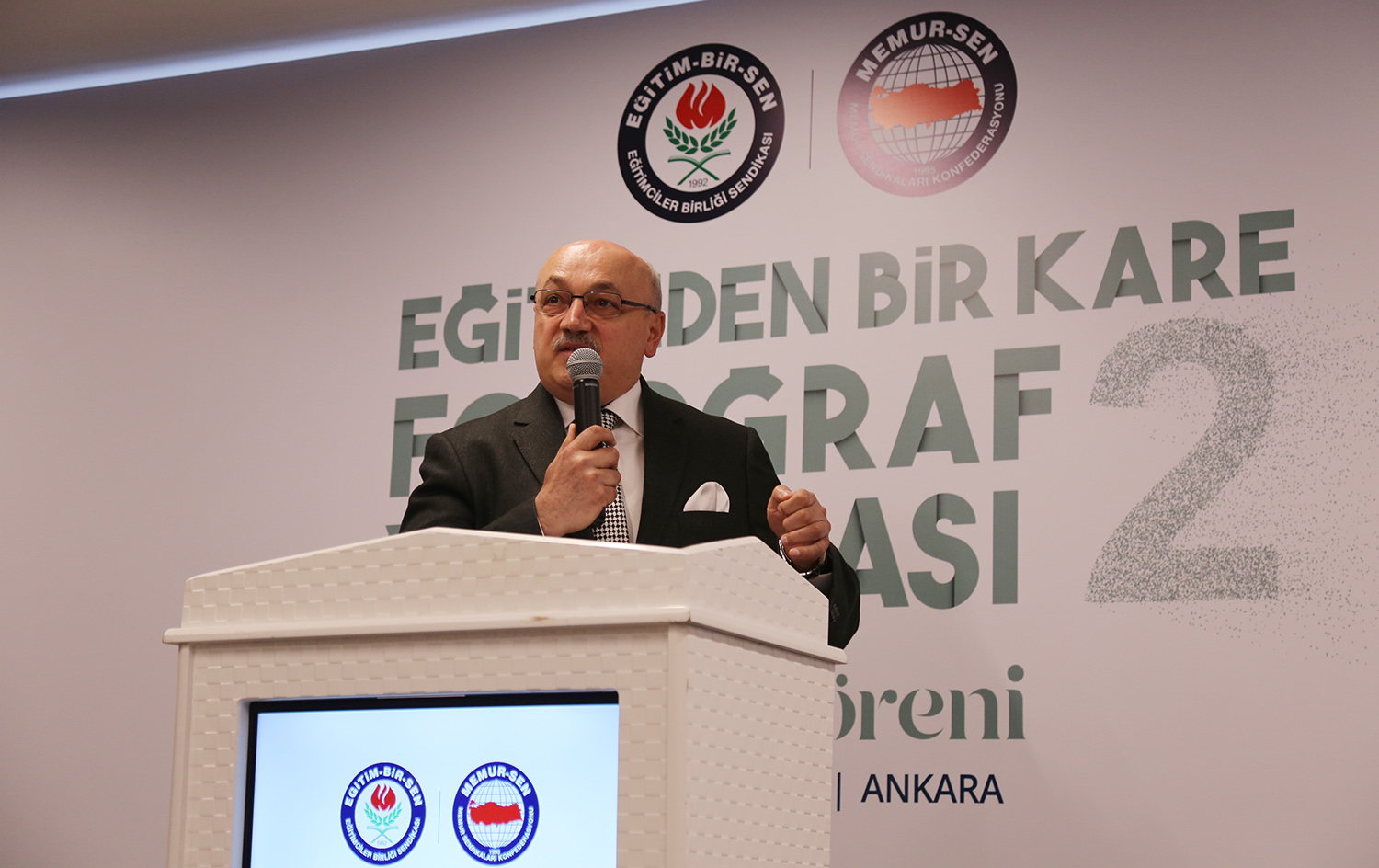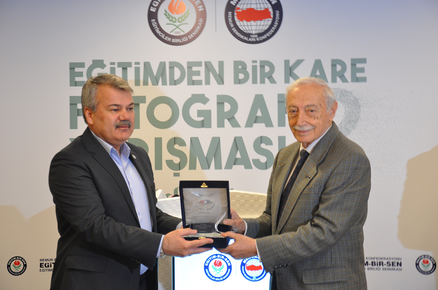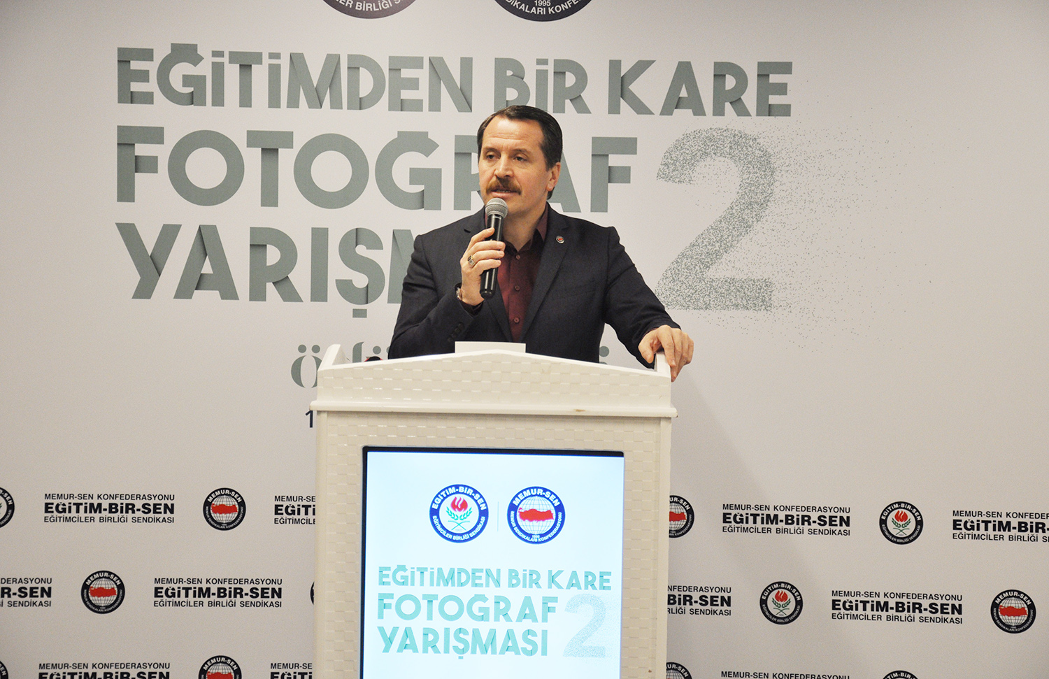 Memur-Sen’e bağlı sendikaların genel başkanları ve yönetimleri, jüri üyeleri Tansu Gürpınar, Tekin Ertuğ, Sami Türkay, Cengiz Oğuz Gümrükçü, Eğitim-Bir-Sen Şube başkanları ve yönetim kurulları, üyeler ve çok sayıda davetlinin katılımıyla düzenlenen ödül töreninde konuşan Genel Başkan Ali Yalçın, Eğitim-Bir-Sen’in, Mehmet Akif İnan öncülüğünde, insanın varoluşunun kadim anlamını, tarihsel mirasını ve medeniyet değerlerini kuşanmış kamu görevlilerinin emek, adalet, özgürlük mücadelesini gerçekleştirmek üzere kurulduğunu belirterek, ideolojik kamplaşmaların etkisiyle mevzilenen ve bu yolla mevzularını belirleyen çatışmacı sendikalardan farklı bir duruş sergileyen, düşünce ve sorun çözme yöntemiyle özgün bir sendikal hareket olduklarını söyledi. Söylem, eylem ve etkinliklerinin yol haritasını bu temel değerden hareketle belirlediklerini vurgulayan Yalçın, “Medeniyet değerlerimizi ihya etmek, kültürel mirasımızı yarınlara aktarmak, sanatçılarla sendikamızı tanıştırmak, üyelerimizle sanat alanında da buluşmak, gençlere fırsat, ustalara imkân olmak, eğitimin her karede farklı bir boyutunun ortaya çıkarılmasını, toplumla buluşmasını sağlamak, objektifleri eğitime odaklamak ve emeği objektif bir şekilde görünür kılmak için ‘Eğitimden Bir Kare’ fotoğraf yarışması düzenleme kararı aldık. Bu yıl da ikincisini gerçekleştirdik” şeklinde konuştu.