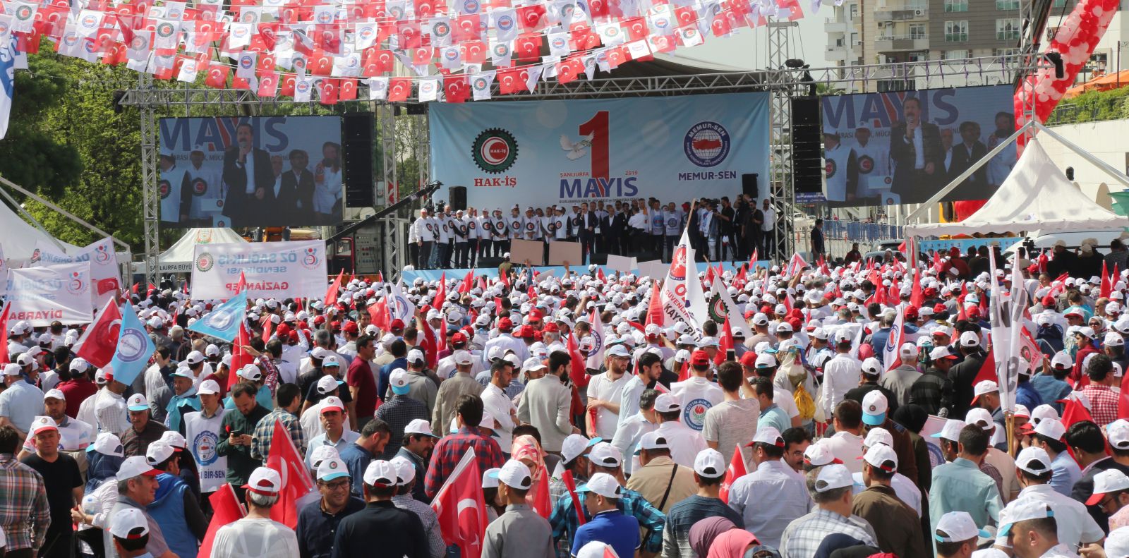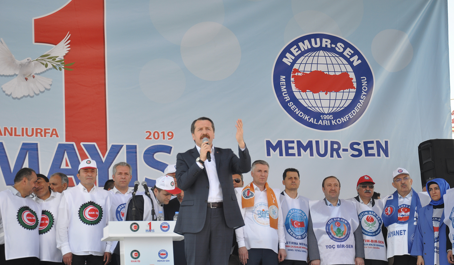 1 Mayıs Emek ve Dayanışma Bayramı’nın Anadolu’nun her alanında kutlanabileceği misyonu ile yola çıkan Memur-Sen ve Hak-İş’in bu yıl ortak adresi Şanlıurfa oldu. Memur-Sen Kurucu Genel Başkanı Mehmet Akif İnan’ın şehri Şanlıurfa’da düzenlenen 1 Mayıs kutlamasında çevre illerden ve Türkiye’nin dört bir yanından işçi ve kamu görevlileri bir araya geldi.