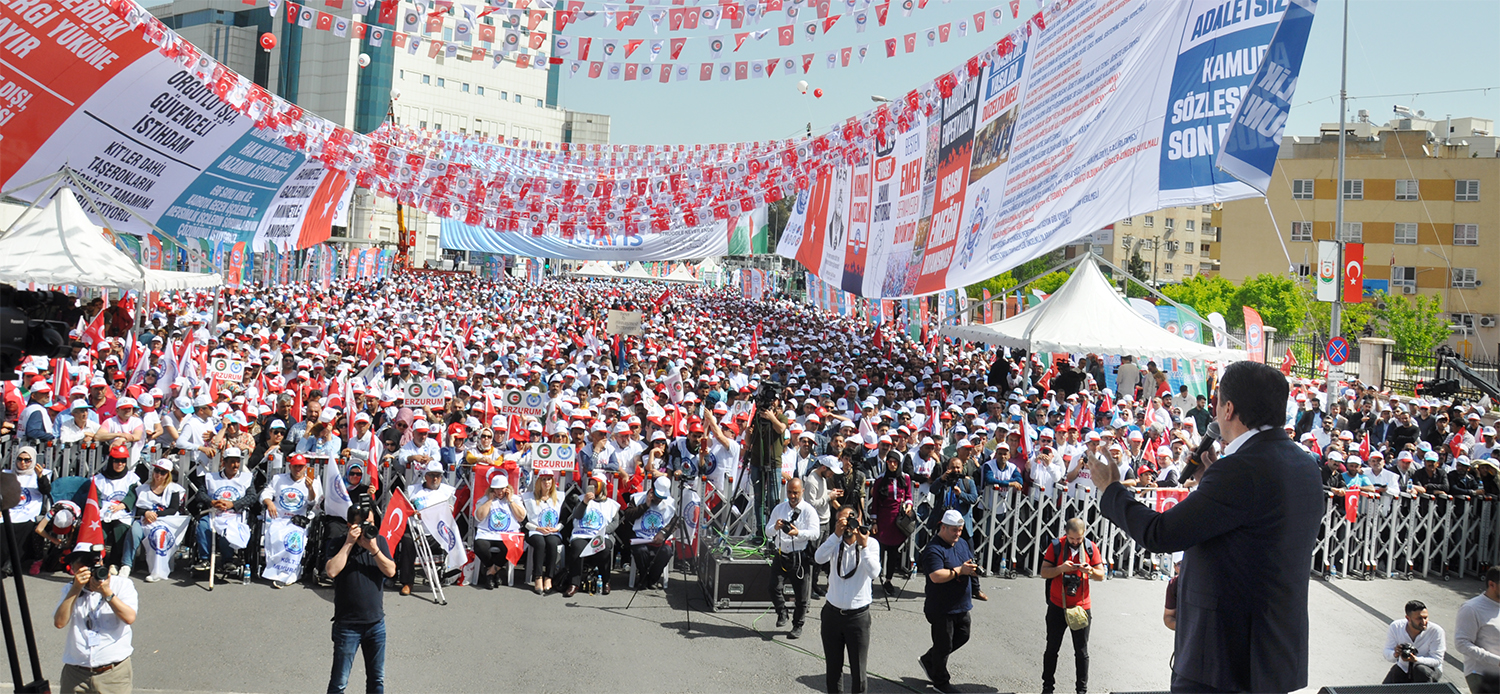 1 Mayıs Emek ve Dayanışma Bayramı’nda Memur-Sen ve Hak-İş birlikteliğinde düzenlenen kutlama Şanlıurfa’da gerçekleştirildi. Türkiye’nin dört bir yanından gelen işçiler ve kamu görevlileri, omuz omuza vererek güvenceli istihdam, insan onuruna yakışır ücret, vergi yükünün azaltılması mesajı verdi.