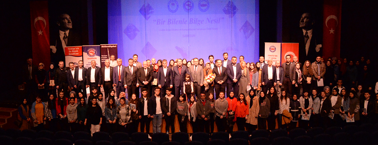 Eğitim-Bir-Sen Samsun 1 No’lu Şube ve Genç Memur-Sen’in “Bir Bilenle Bilge Nesil” projesi kapsamında düzenlediği “Liseler Arası Okuma ve Kompozisyon Yarışması” ödül töreni, Samsun Üniversitesi Rektörü Prof. Dr. Mahmut Aydın, İl Millî Eğitim Müdürü Coşkun Esen, Memur-Sen’e bağlı sendikaların başkan ve yönetim kurulları, üyeler, öğrenciler ve çok sayıda davetlinin katılımıyla yapıldı.