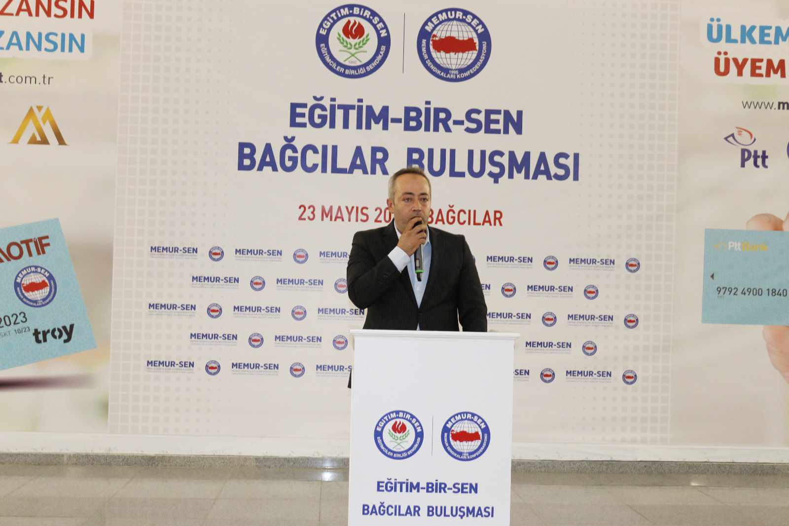 İstanbul 1 No’lu Şube Başkanı Mükremin Köse, “Eğitim Bir Sen İstanbul 1 No’lu Şube olarak kurulduğu günden beri durmadan usanmadan, sebeplerin arkasına saklanmadan, hak için, özgürlükler için, millet için, ümmet için çok büyük, fedakârlıklar ortaya koyduk. Büyük mücadelelerde büyük bedeller ödedik. Dün öncülerimiz özlük ve özgürlük mücadelemizde efsaneler yazdılar ve bugün bu salonu dolduran dava erleri olarak bizler vatan millet ve ümmet hattında yer almaya ve yerel ve ulusal haydutlara karşı mücadele etmeye devam edeceğiz.” diye konuştu.