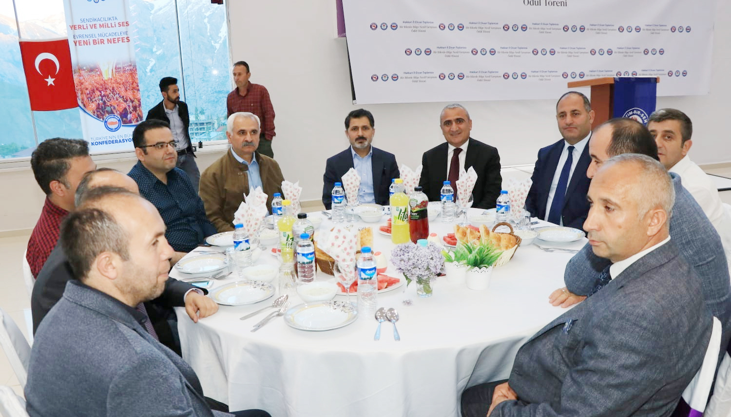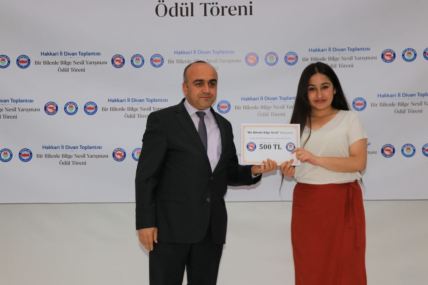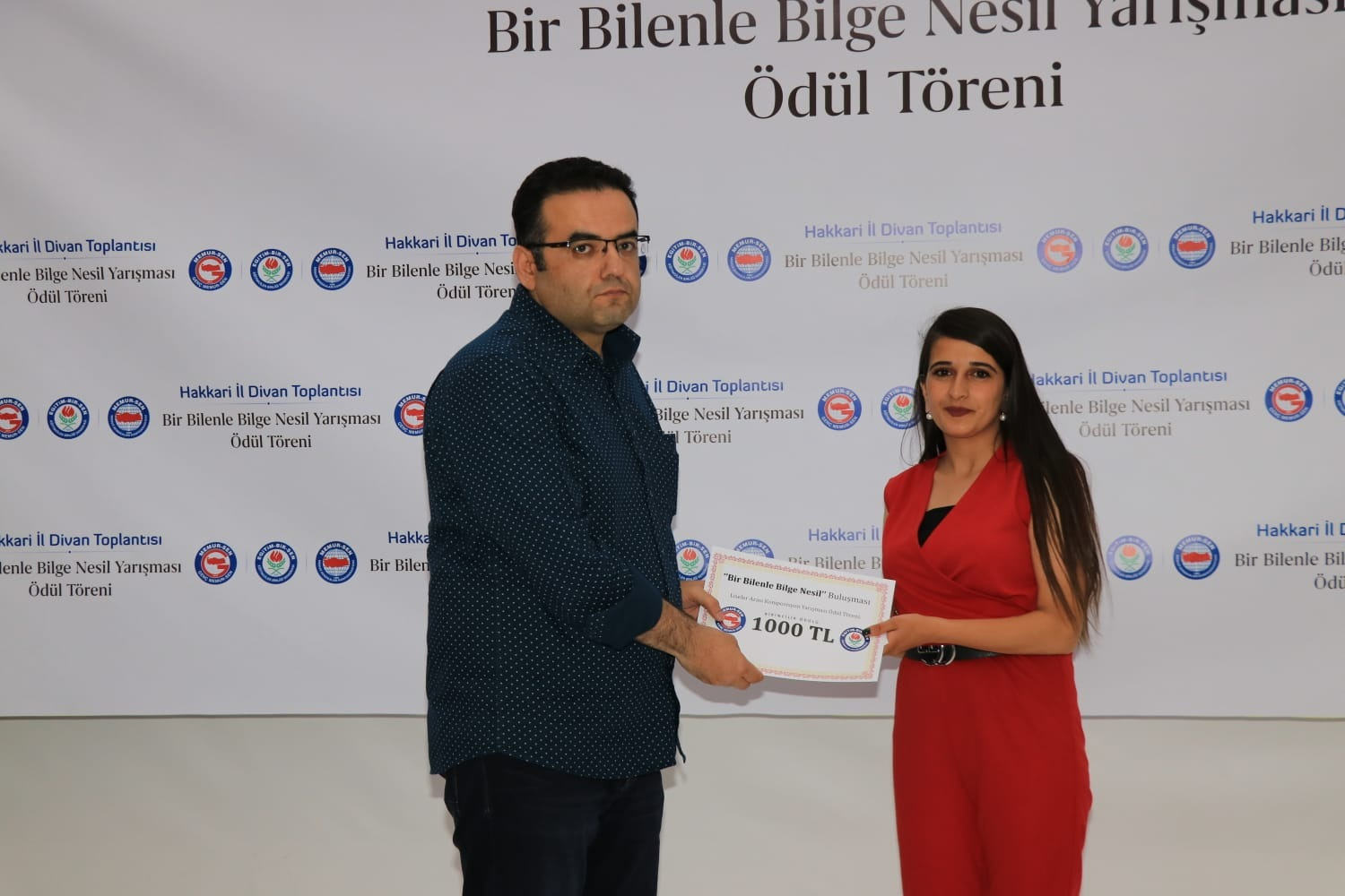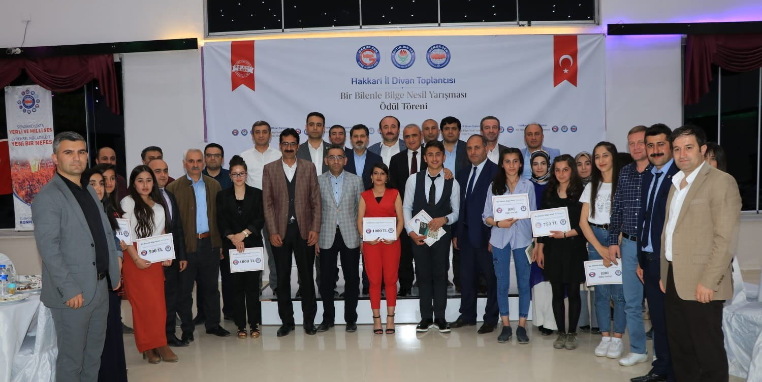 Eğitim-Bir-Sen Hakkâri Şubesinin düzenlediği “Bir Bilenle Bilge Nesil” ödül törenine Eğitim-Bir-Sen Genel Başkan Yardımcısı Şükrü Kolukısa, İl Milli Eğitim Müdürü Bilal Gür, Baro Başkanı Zeydin Kaya, birçok il müdürü, projeyi yürüten öğretmenler, dereceye giren öğrenciler ve aileleri katıldı.