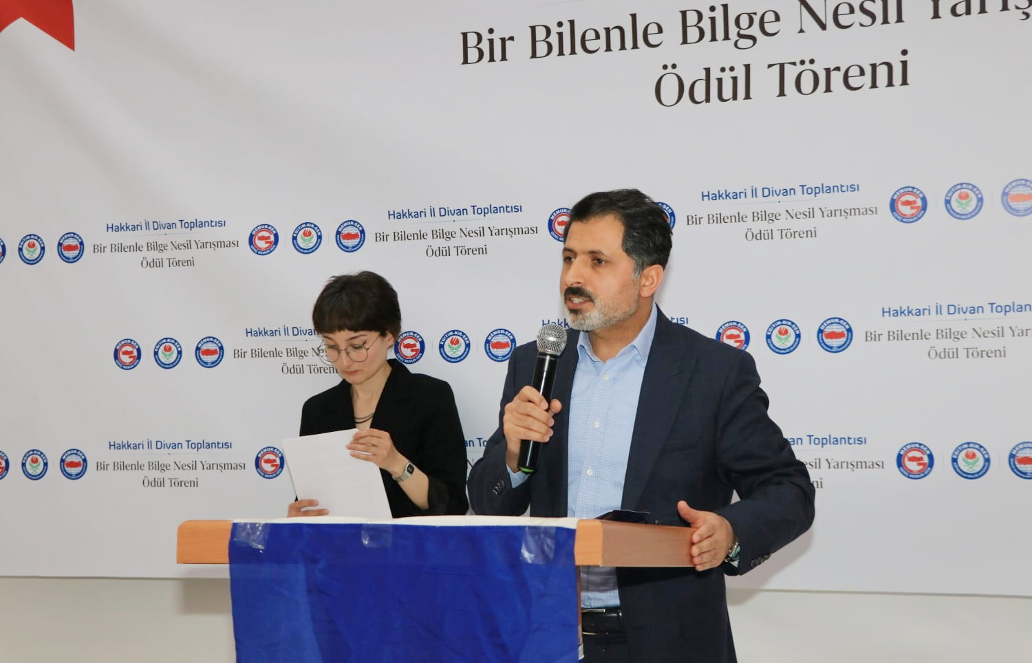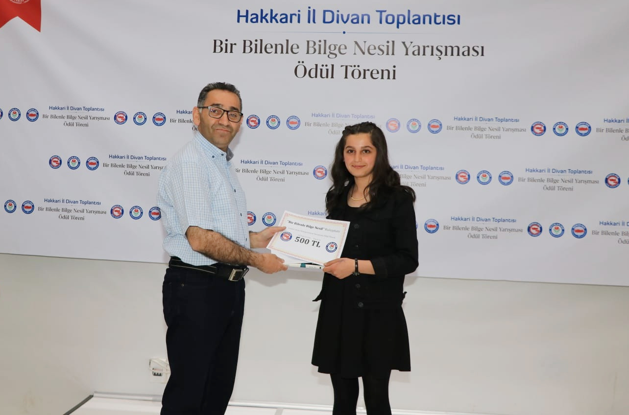 Programın sonunda, “Bir Bilenle Bilge Nesil” projesi kapsamında düzenlenen yarışmada dereceye girenlere ödülleri verildi. Hakkari Şubemize önceki dönemlerde hizmet eden; emek, ömür ve gönül veren başkanlarımıza şükran plaketi takdim edildi.