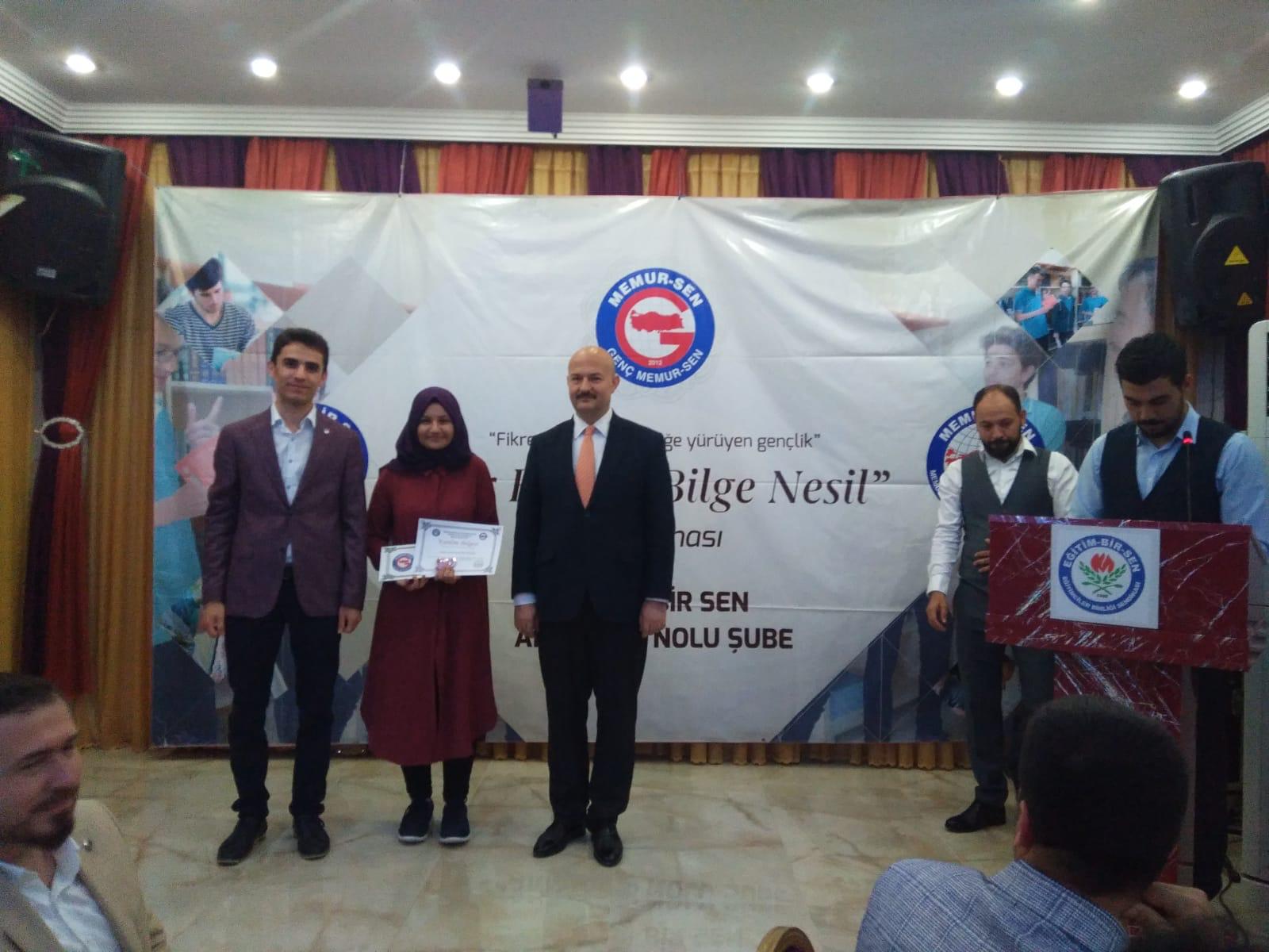 Programın sonunda, “Bir Bilenle Bilge Nesil” projesi kapsamında düzenlenen yarışmada dereceye girenlere ödülleri verildi.