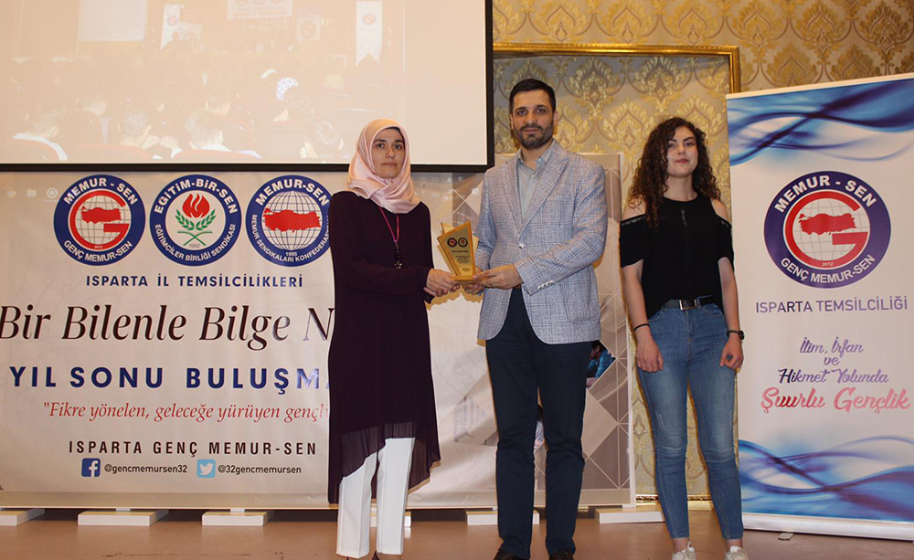 Genç Memur – Sen Isparta Temsilcisi Sara Kutlu ve Isparta Belediye Başkanı Şükrü Başdeğirmen’in de bir selamla konuşması yaptığı programın sonunda ‘Bir Bilenle Bilge Nesil’ Projesi kapsamındaki kompozisyon yarışmasında, emek veren öğretmenlerimize ve destek olanlara plaket, dereceye giren öğrencilere de ödülleri verildi.