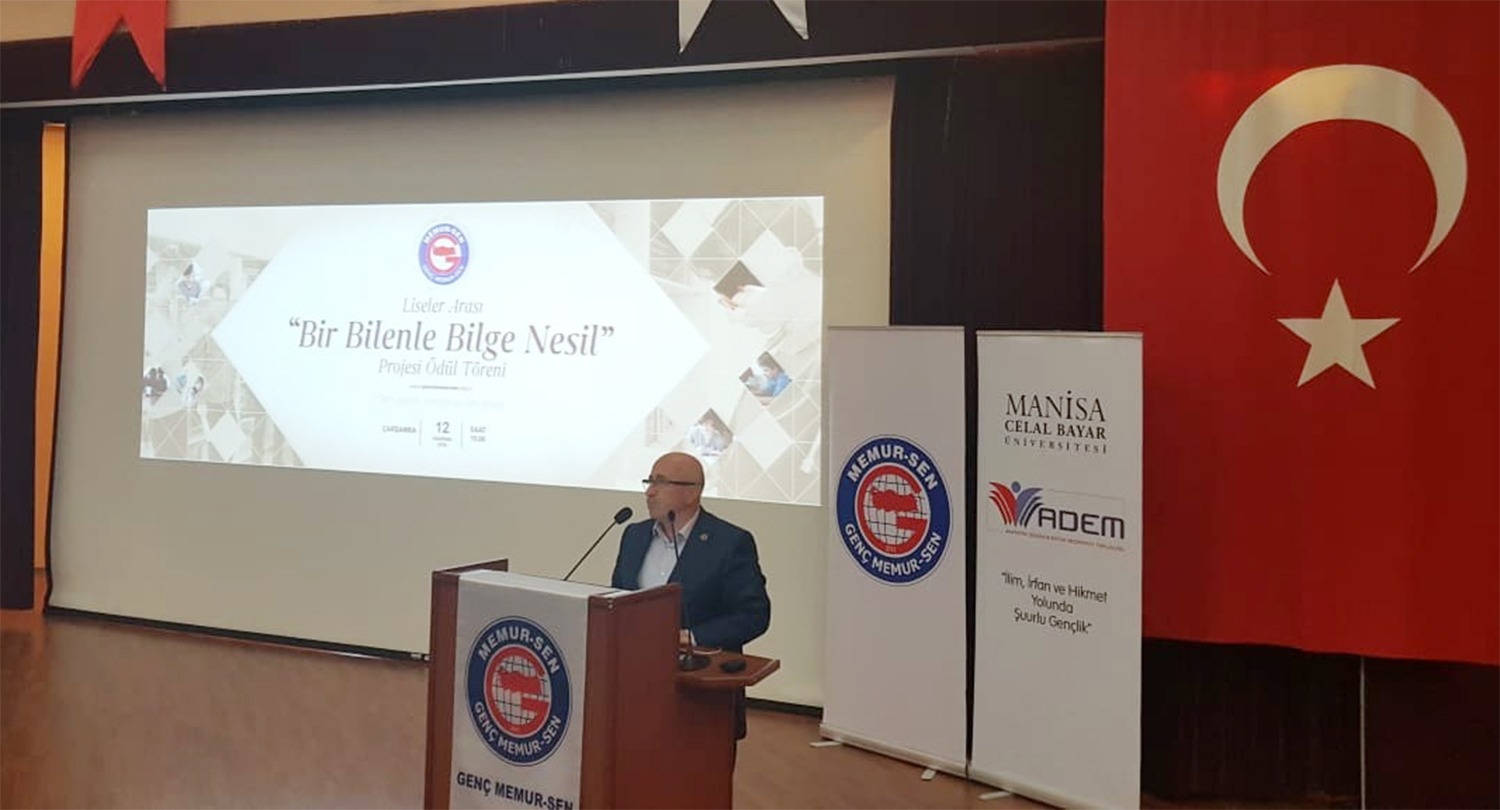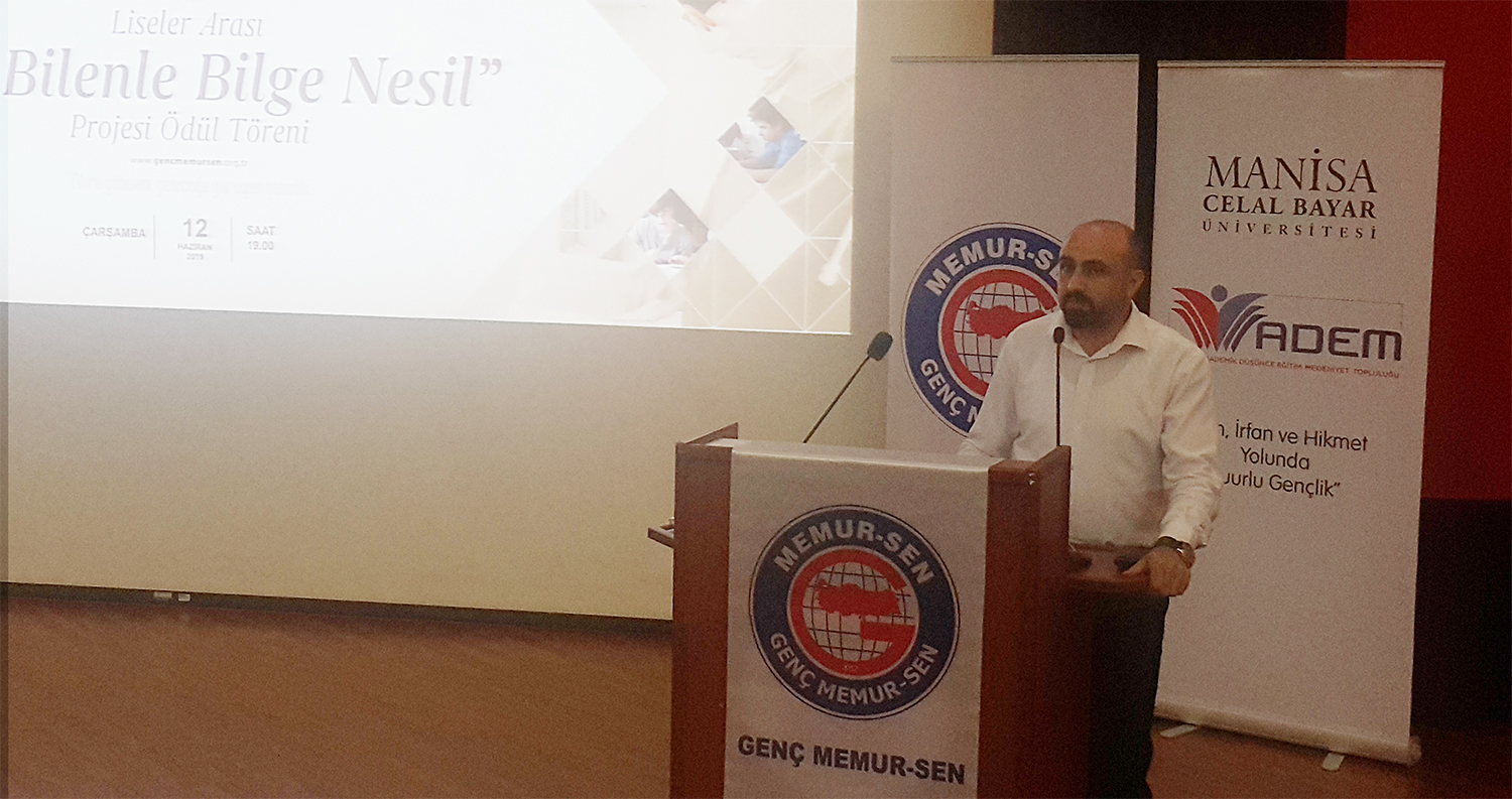 Manisa Şubesi’nin Celal Bayar Üniversitesi Süleyman Demirel Kültür Merkezi’nde düzenlediği “Liseler Arası Bir Bilenle Bilge Nesil Projesi Ödül Töreni”nde konuşan Şükrü Kolukısa, ilim, irfan ve hikmet yolunda, okuyan, araştıran, yazan nesiller yetiştirmek amacıyla yürüttükleri ‘Bir Bilenle Bilge Nesil’ projesinde önemli bir mesafe katettiklerini belirterek, “Adanmış öğretmenler rehberliğinde binlerce öğrenciyi kitapla bir araya getiriyoruz. Proje kapsamında okuyan öğrenci sayısı her geçen yıl artıyor ve bu da bizi memnun ediyor” şeklinde konuştu.