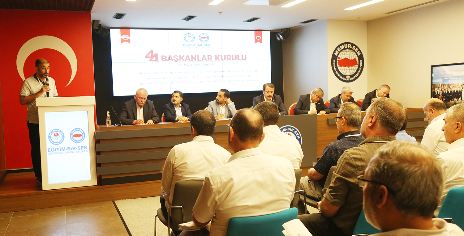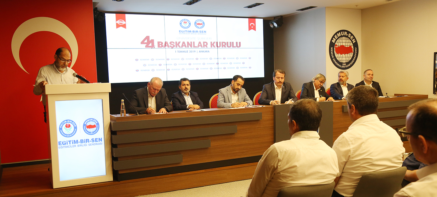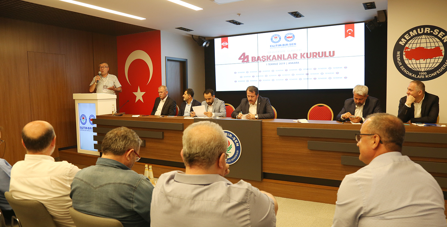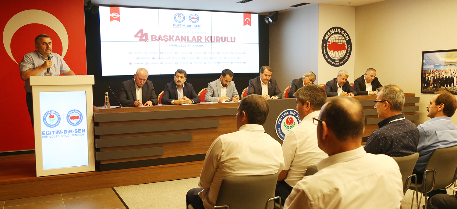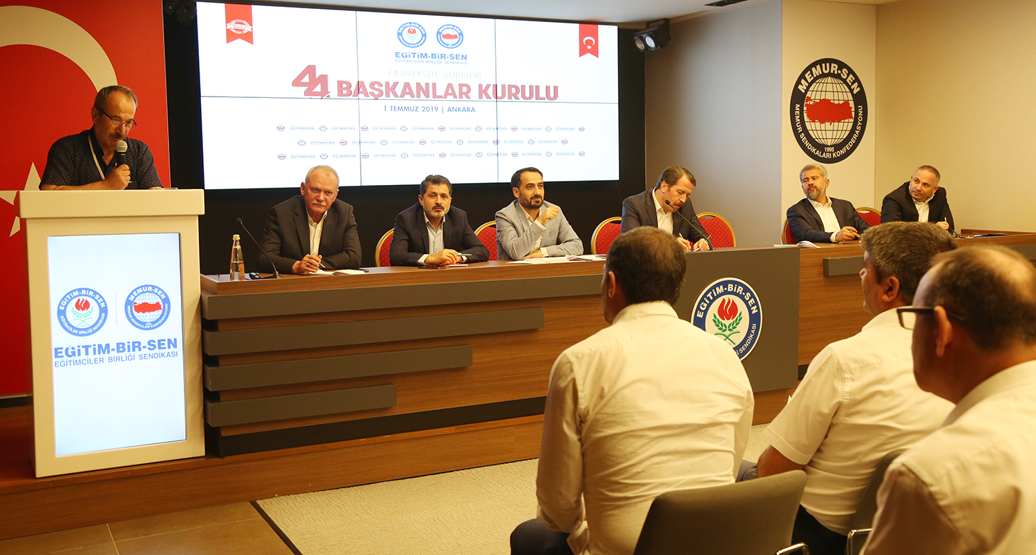 Eğitim-Bir-Sen Üniversite Şubeleri 44. Başkanlar Kurulu toplantısı Ankara’da yapıldı. Sendikal çalışmalara, üniversitelerde karşılaşılan güçlüklere, akademik ve idari personelin sorunlarının çözümüne ilişkin değerlendirmelerin yapıldığı toplantı, Genel Başkan Ali Yalçın’ın açılış konuşmasıyla başladı.