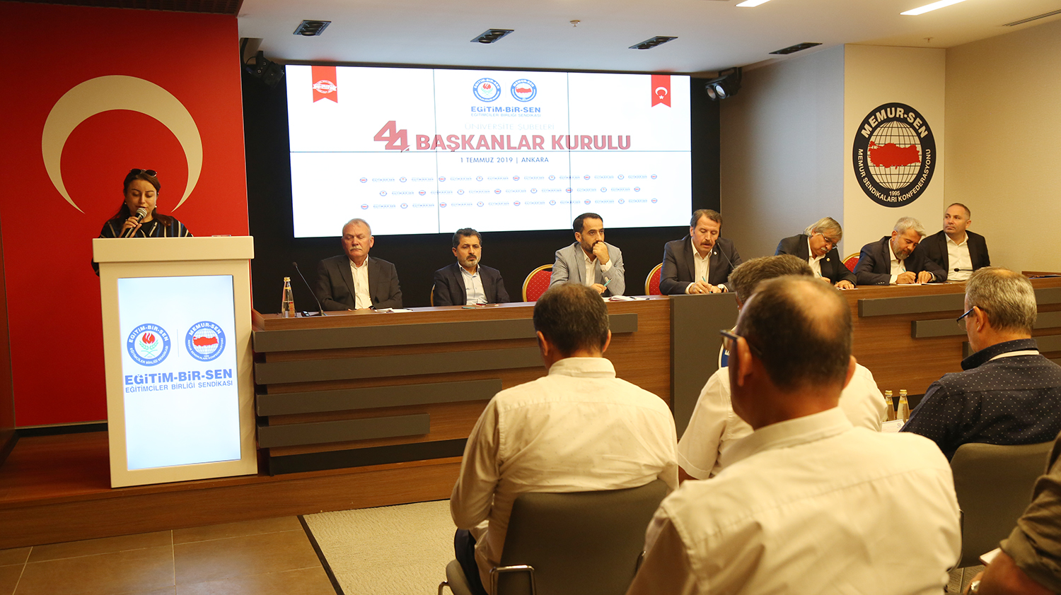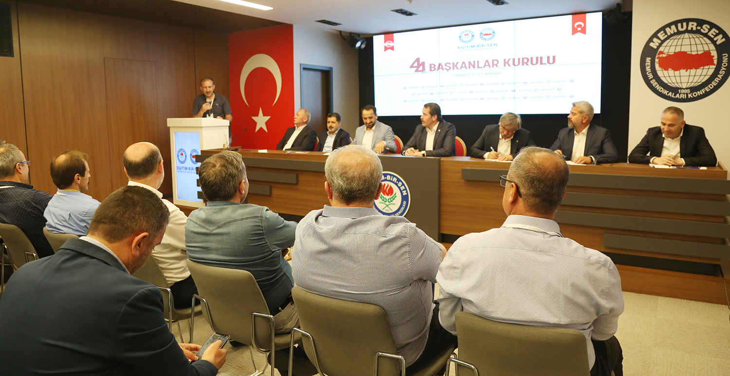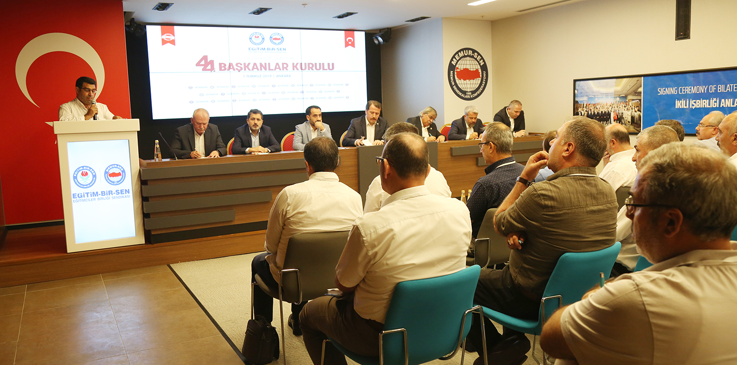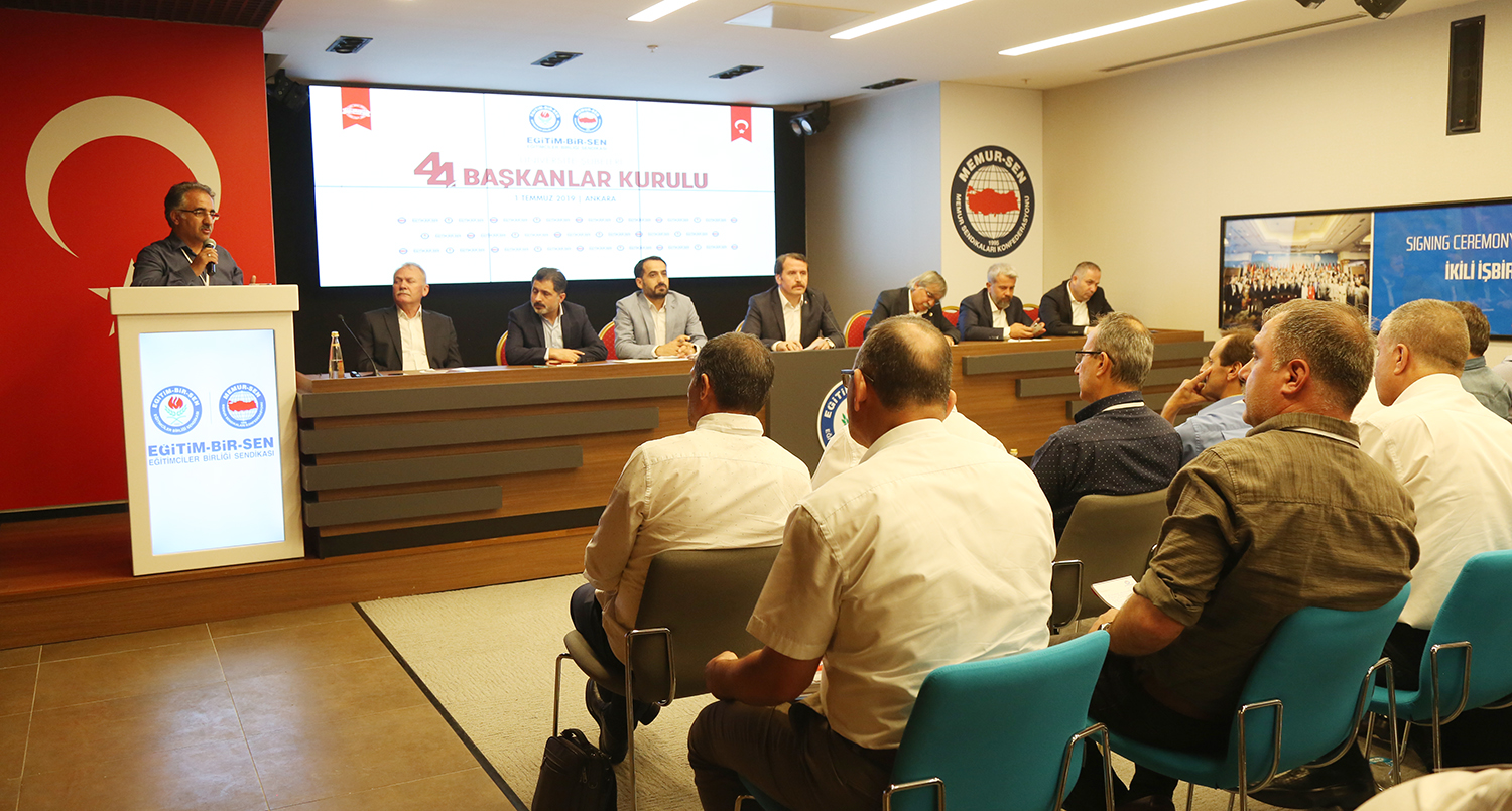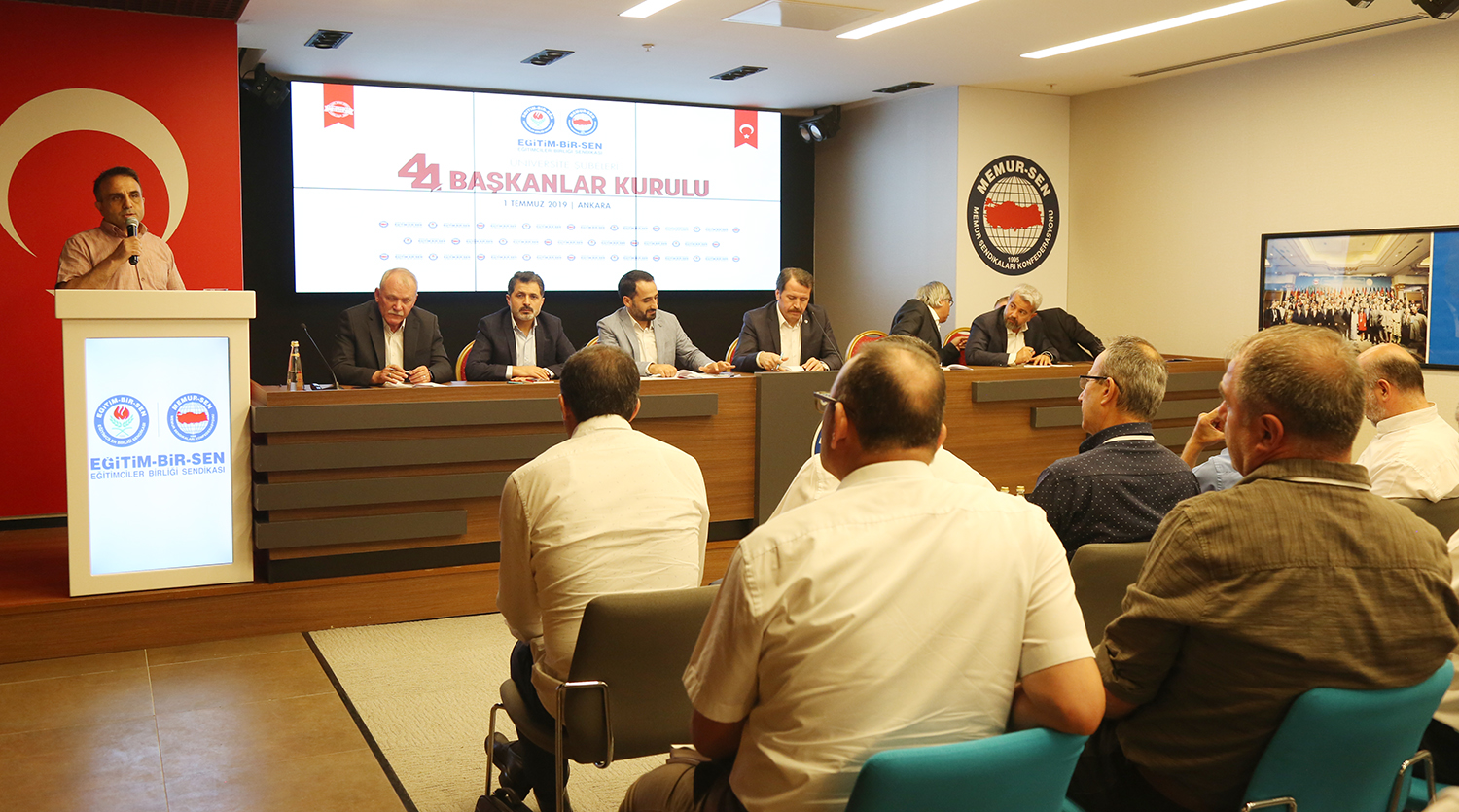 Eğitim-Bir-Sen Üniversite Şubeleri 44. Başkanlar Kurulu toplantısı Ankara’da yapıldı. Sendikal çalışmalara, üniversitelerde karşılaşılan güçlüklere, akademik ve idari personelin sorunlarının çözümüne ilişkin değerlendirmelerin yapıldığı toplantı, Genel Başkan Ali Yalçın’ın açılış konuşmasıyla başladı.